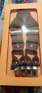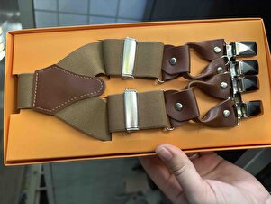 Metal 6 Klipsli Uçları Derili Lüx Taba Pantolon Askısı Metal 6 Klipsli Uçları Derili Lüx Taba Pantolon Askısı LPA6 تک سایز