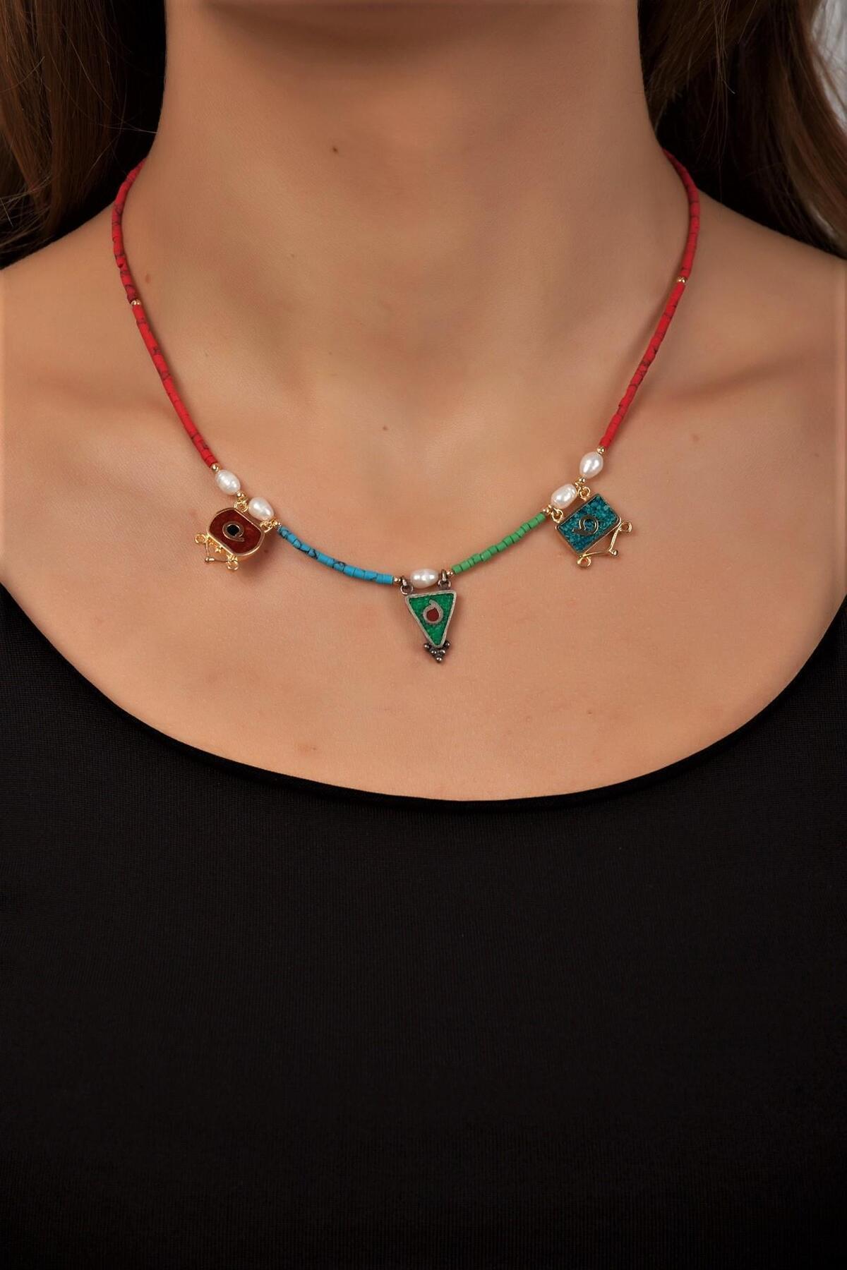 Doğal Taşlı Mozaik Işlemeli Gümüş Kolye 6825 Doğal Taşlı Mozaik Işlemeli Gümüş Kolye 6825 MP6825 تک سایز