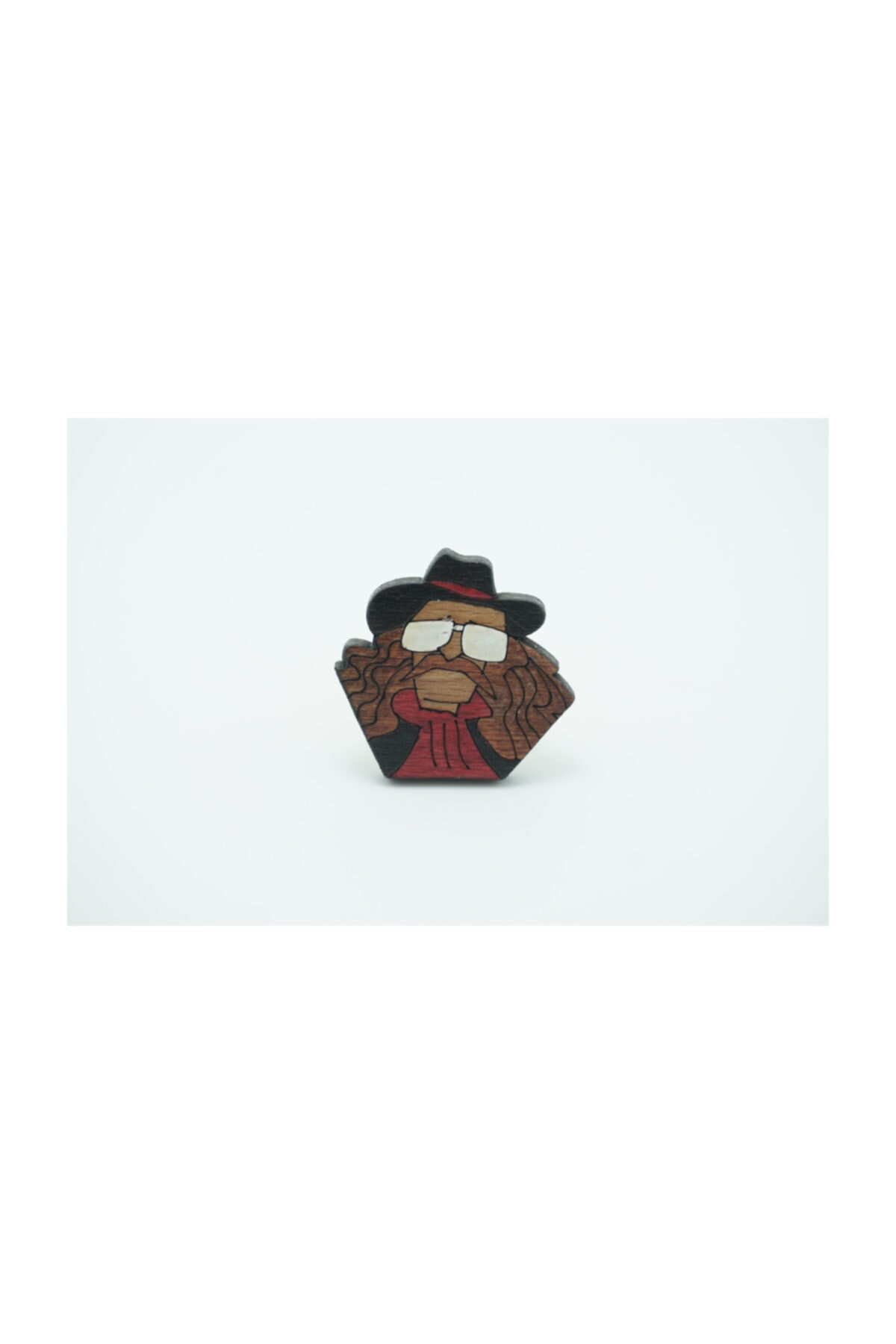 Barış Manço Ahşap El Boyaması Broş gokmentoymu03