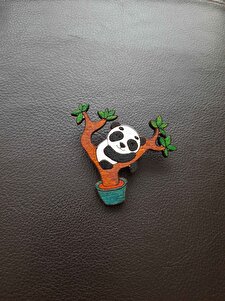 Panda Ağaçta Ahşap El Boyaması Broş Panda Ağaçta Ahşap El Boyaması Broş gokmentoyh002 تک سایز