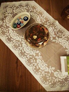 Güllü Desen Örme Tül Kısa Runner Örtüsü 40x90 (KREM) Güllü Desen Örme Tül Kısa Runner Örtüsü 40x90 (KREM) 50299 تک سایز