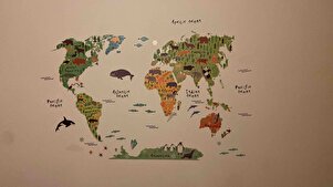 Çocuk Odası Dekoru Hayvanlı Dünya Çocuk Haritası Atlas Pvc Duvar Sticker Çocuk Odası Dekoru Hayvanlı Dünya Çocuk Haritası Atlas Pvc Duvar Sticker SK-77 تک سایز