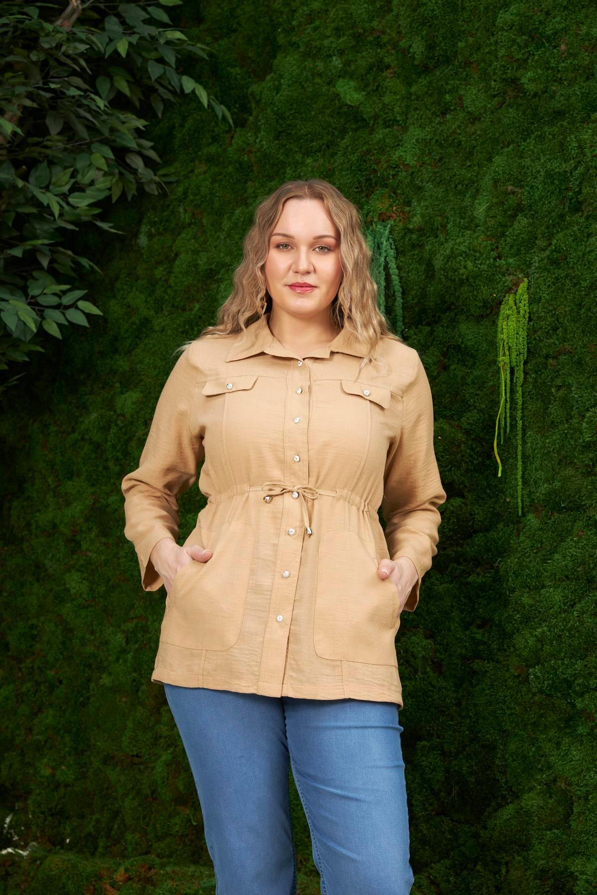Kadın RMG Bel Bağcık Detaylı Gömlek Yaka Büyük Beden Keten Ceket Kadın RMG Bel Bağcık Detaylı Gömlek Yaka Büyük Beden Keten Ceket 9734 54