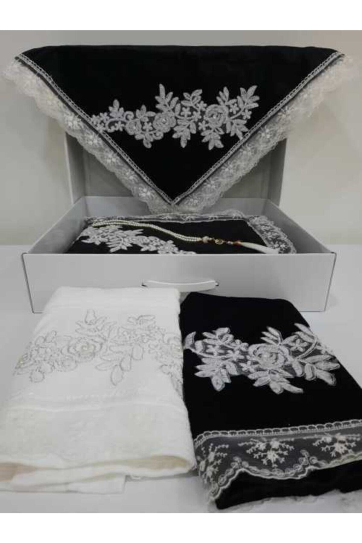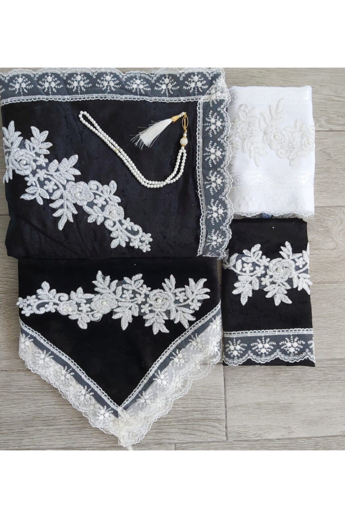 Kadife Seccade Takımı 5 Parça Çeyizlik Bohça Gelin Seti -siyah Kadife Seccade Takımı 5 Parça Çeyizlik Bohça Gelin Seti -siyah ASEL0136 70 x 120