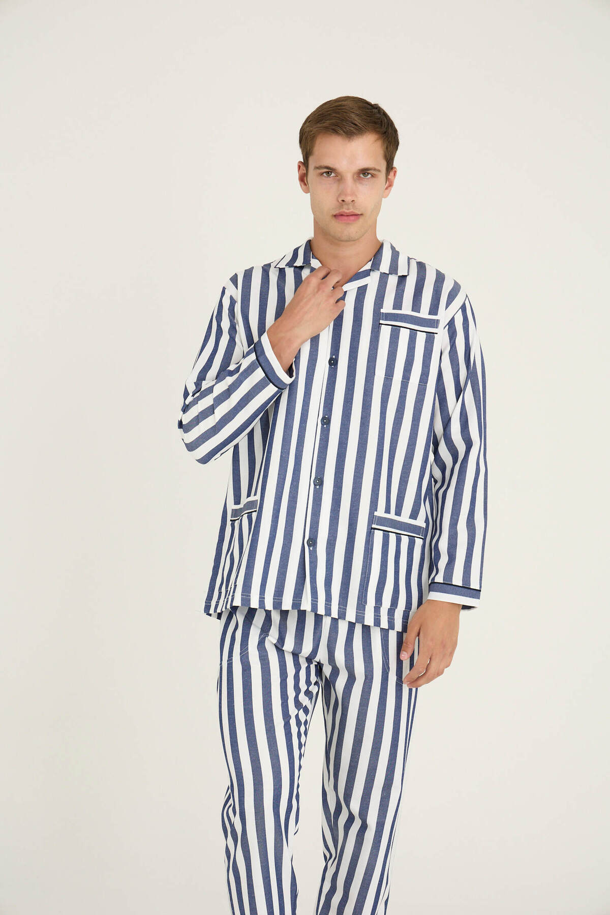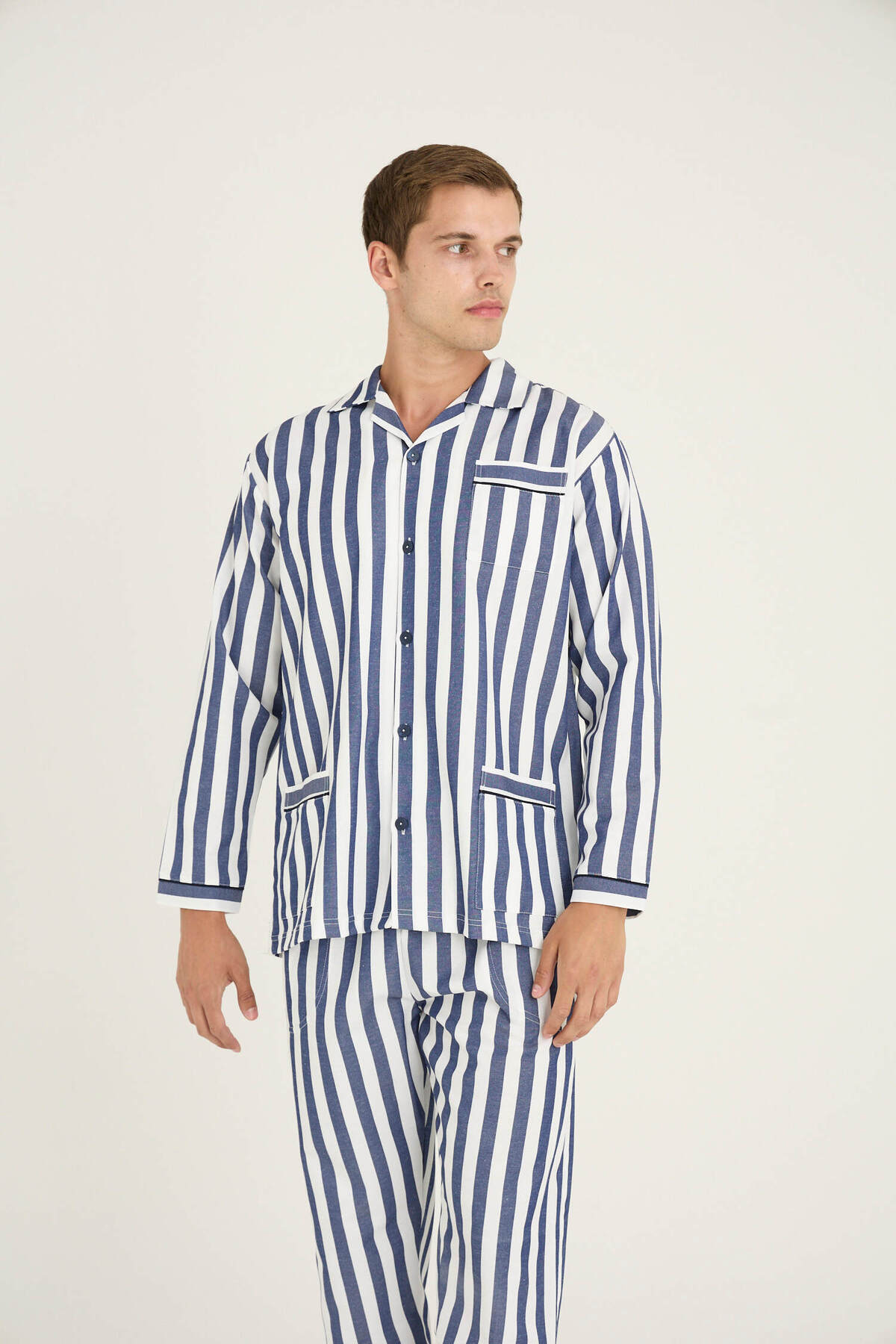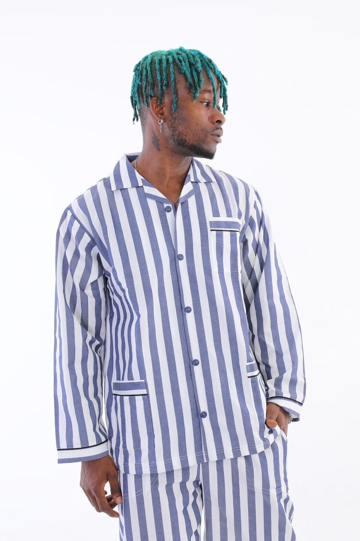 Erkek Boy Çizgili Poplin Kumaş Pijama Takımı Konforlu Uyku Erkek Boy Çizgili Poplin Kumaş Pijama Takımı Konforlu Uyku kly4007 4XL