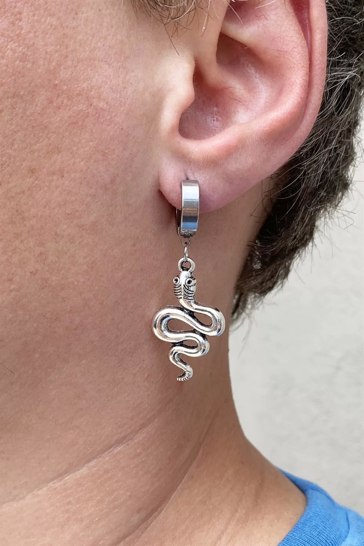 Gümüş Rengi Yılan Figürlü Küpe (5CM) Gümüş Rengi Yılan Figürlü Küpe (5CM) UKP9451 تک سایز