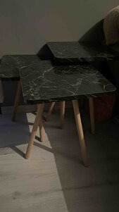 Üçlü Zigon Sehpa Ahşap Ayaklı Kare Tasarım Siyah Mermer Desenli Üçlü Zigon Sehpa Ahşap Ayaklı Kare Tasarım Siyah Mermer Desenli MRMR3LÜ تک سایز