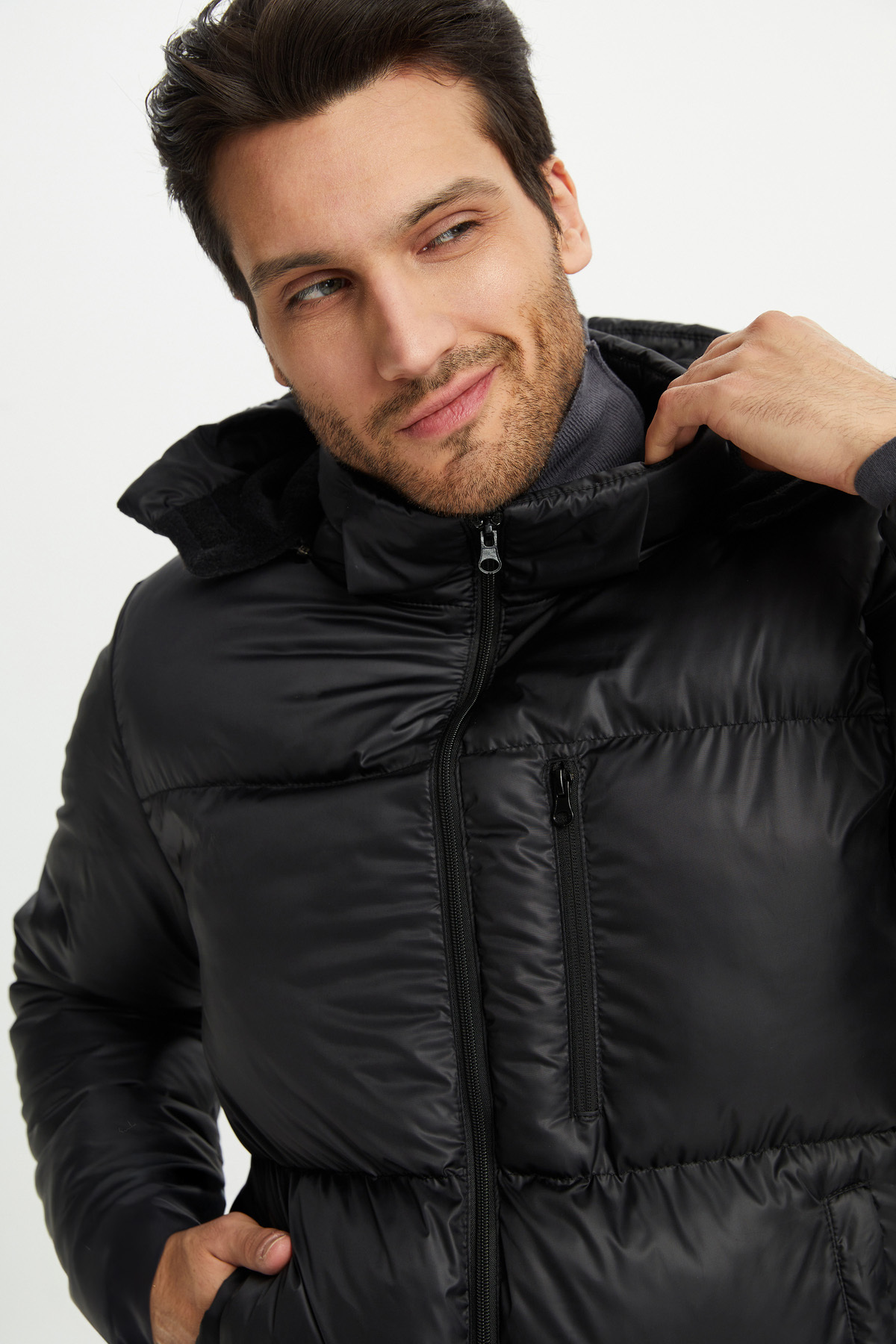 Erkek Siyah Elyaflı Kapüşonlu Rüzgar Geçirmez Şişme Spor Kışlık Mont Erkek Siyah Elyaflı Kapüşonlu Rüzgar Geçirmez Şişme Spor Kışlık Mont RGDM-400 3XL