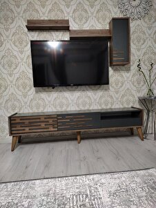 Valensiya Duvar Raflı Tv Ünitesi - Ceviz / Antrasit Valensiya Duvar Raflı Tv Ünitesi - Ceviz / Antrasit VLNTVDR تک سایز