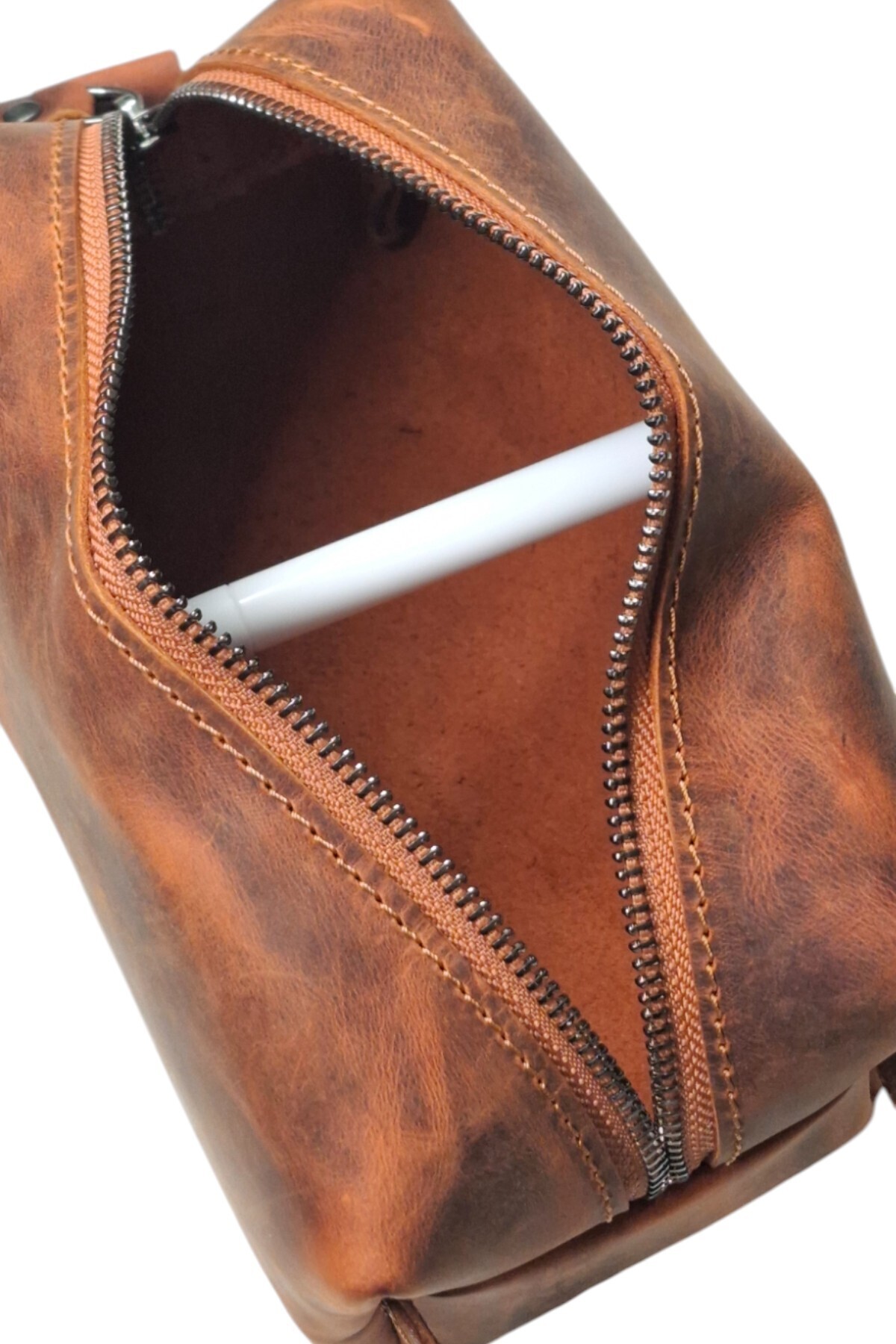 El Çantası Turuncu Hakiki Deri Dopp Kit Kozmetik Ve Seyahat Çantası El Çantası Turuncu Hakiki Deri Dopp Kit Kozmetik Ve Seyahat Çantası MATDOPPKITM Orta Boy