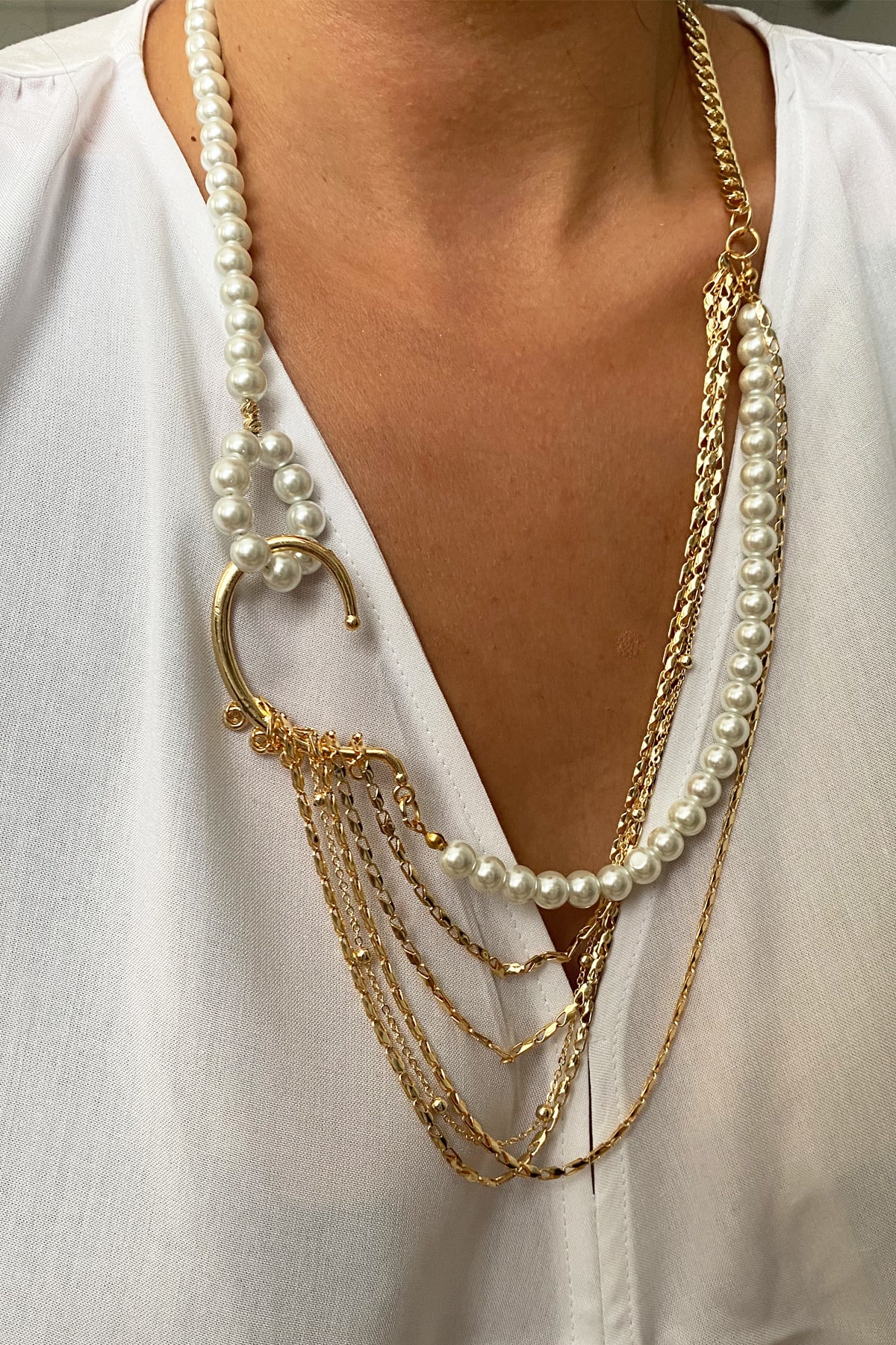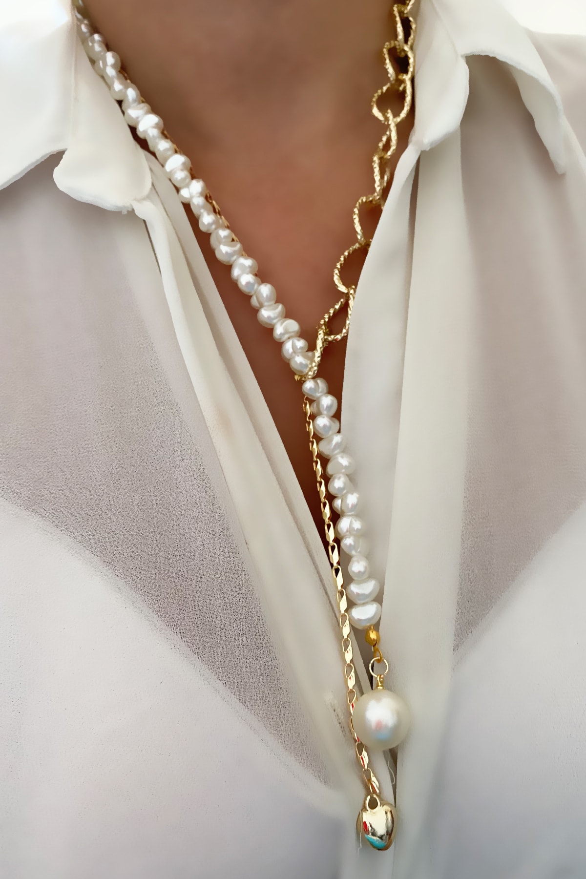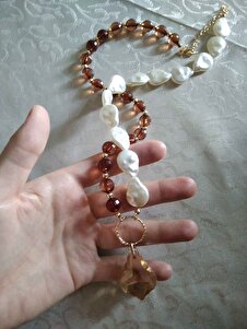 Barok Inci Kristal Uçlu Uzun Kolye Barok Inci Kristal Uçlu Uzun Kolye 621012418 تک سایز