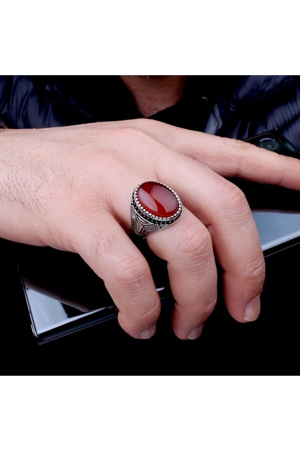 Örgü Motifli Tuğra Model Lal Taşlı 925 Ayar Gümüş Erkek Yüzük Örgü Motifli Tuğra Model Lal Taşlı 925 Ayar Gümüş Erkek Yüzük 11088 30