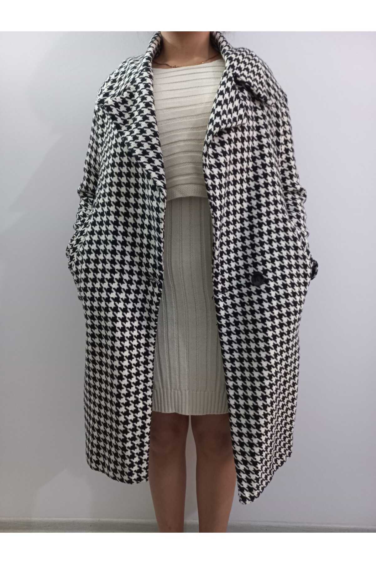 Astarlı Desenli Uzun Kaban | Kbn34176 Siyah Saks Kaz Ayağı Astarlı Desenli Uzun Kaban | Kbn34176 Siyah Saks Kaz Ayağı KBN34176 50