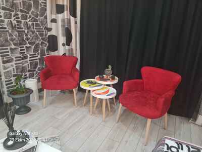 ürün rengi biraz daha koyu kırmızı, kumaşında parlak iplik de var. . paketleme çok iyiydi. ayaklarında dengesizlik problemi yok. kurulumu çok kolay, ayaklar numaralandırılmış zaten. ben ölçülere bakmamıştım. o yüzden kol boyu beklediğimden kısa. koltuğun yüksekliği de kişiye göre değişir fakat oturumu çok geniş değil alacaklar ölçüye dikkat etsin derim bana yetiyor.160 boy 54 kilo.bir de ufak bir detay rahatsız etti oturum yerinin sonu aşağıya doğru fazla eğimli boyunuz uzunsa sorun olmaz. ayak altına destekle onu çözdüm.