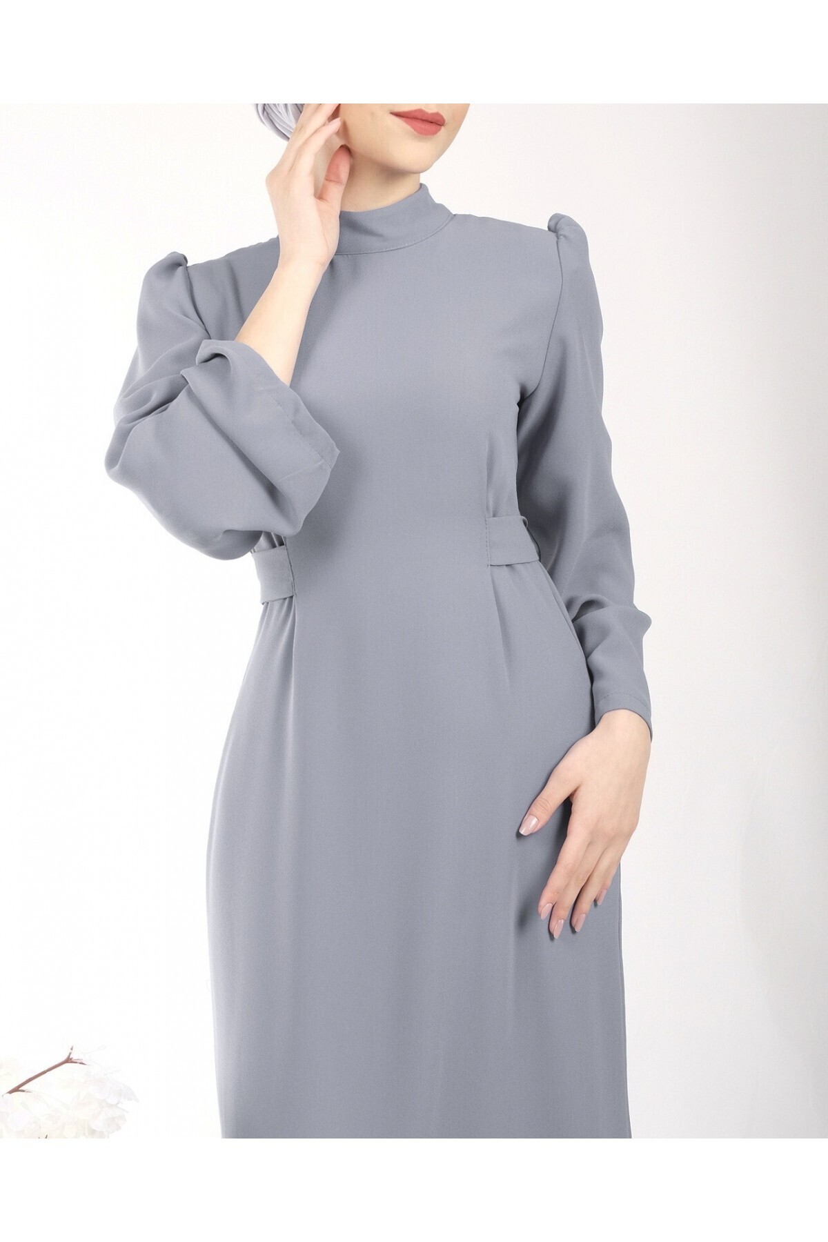 Hakim Yaka Belden Bağlamalı Elbise -Gri Hakim Yaka Belden Bağlamalı Elbise -Gri TY111-60835 44