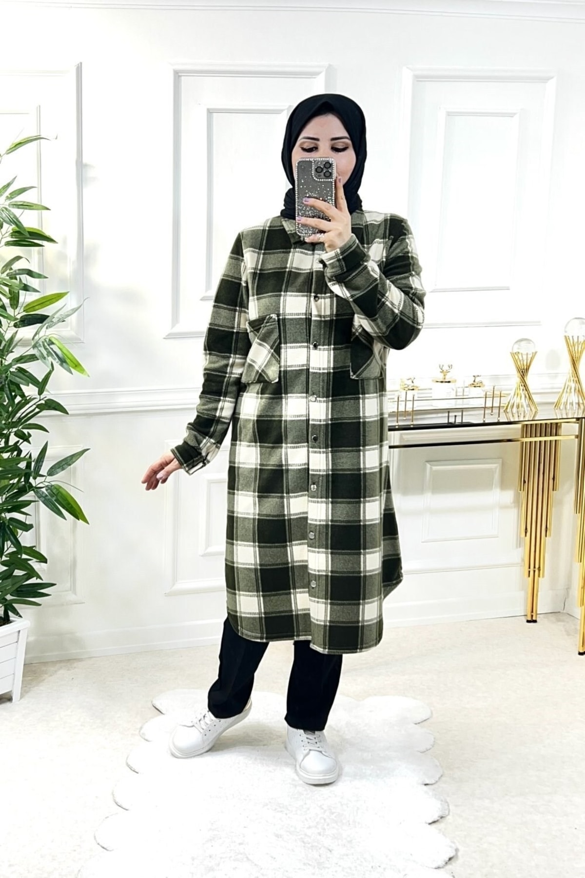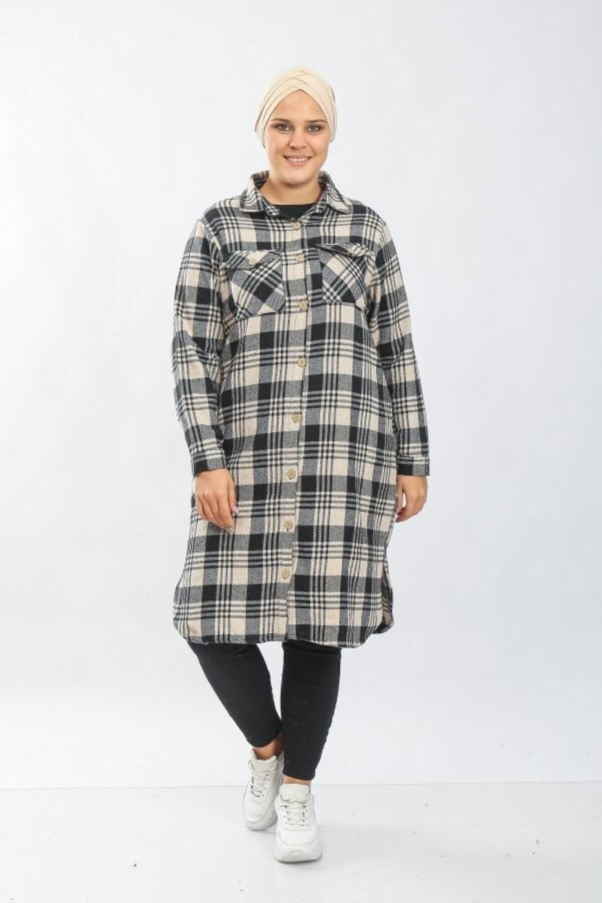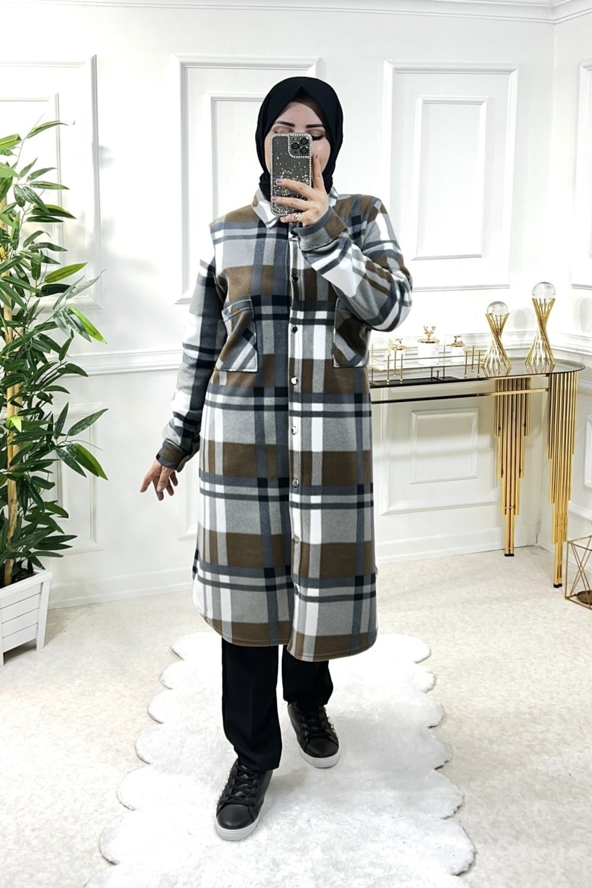 Büyük Beden Ayşil Oversize Kalın Polar Gömlek - Kahve Pencere Büyük Beden Ayşil Oversize Kalın Polar Gömlek - Kahve Pencere 3372 5XL