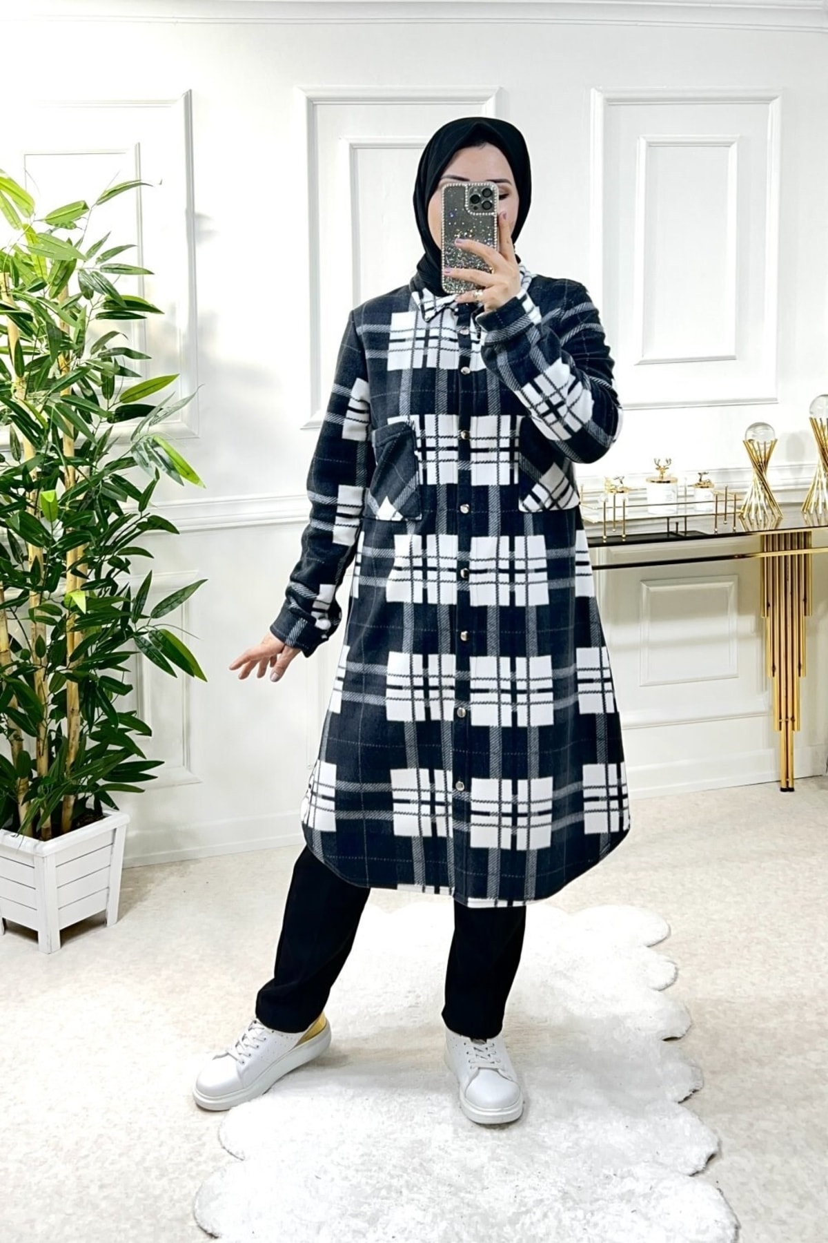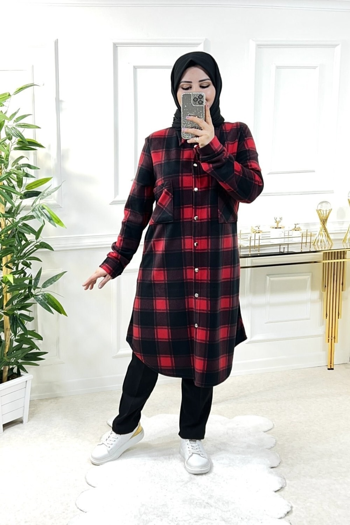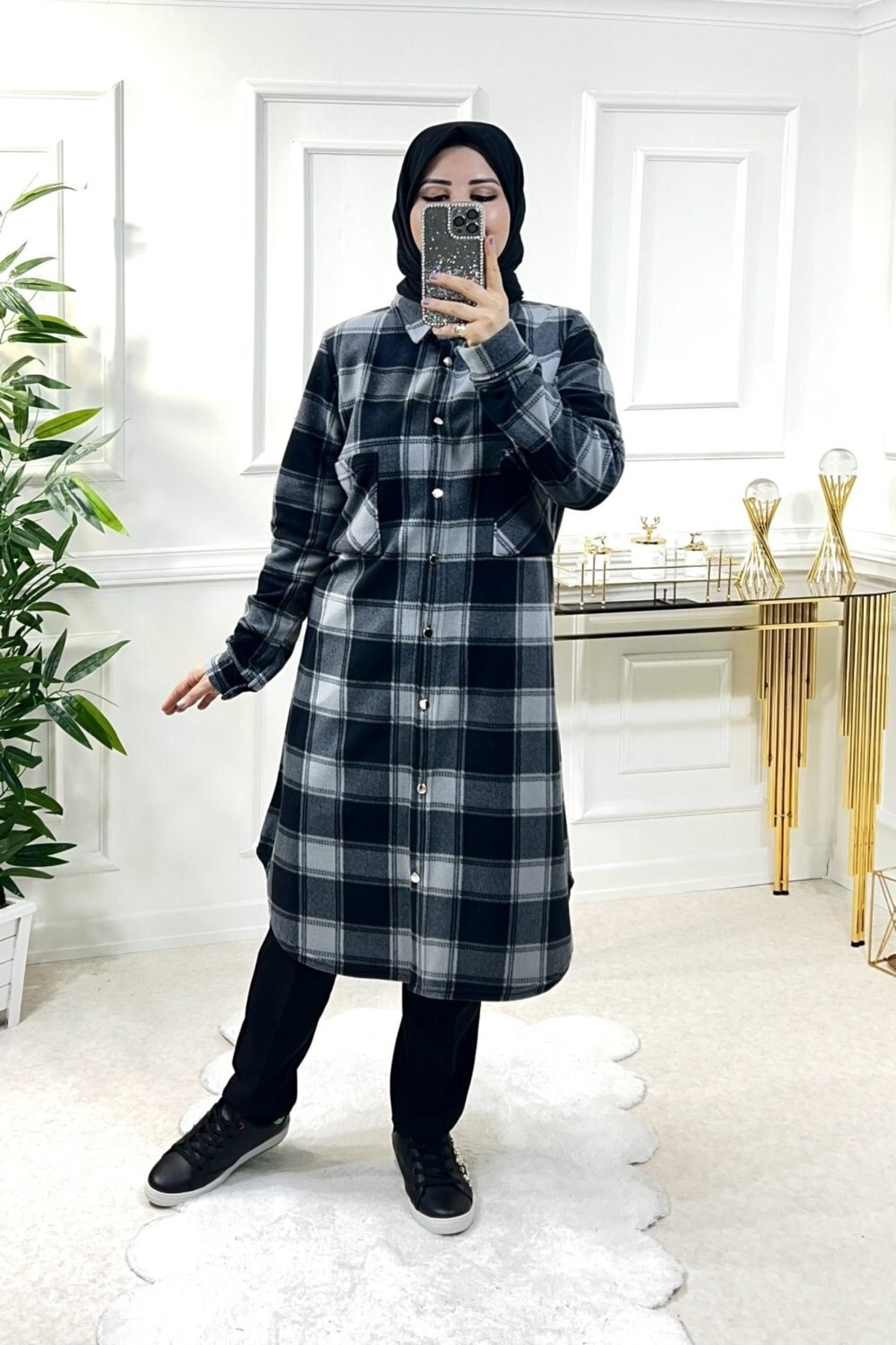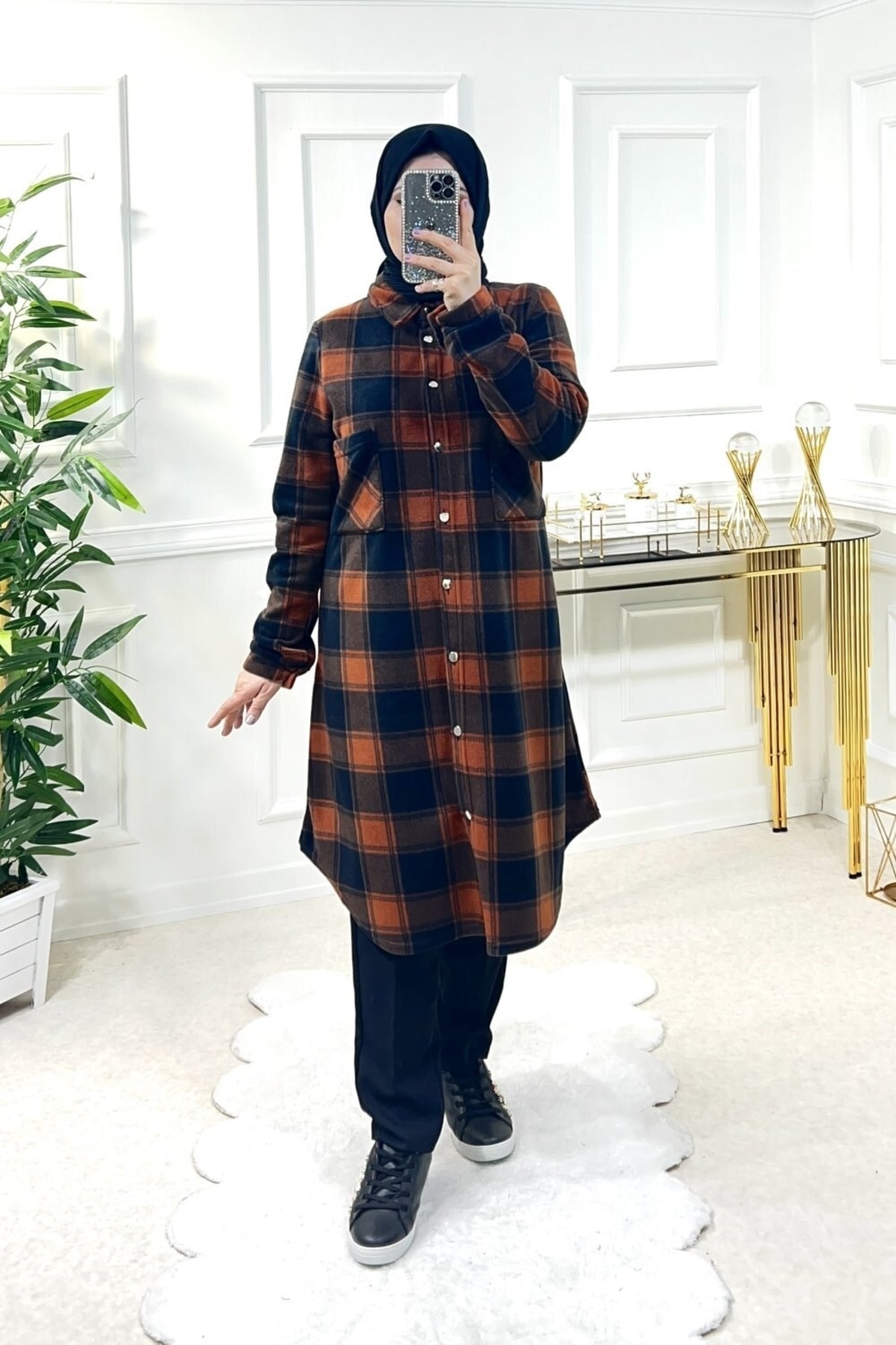 Büyük Beden Ayşil Oversize Kalın Polar Gömlek - Kahve Pencere Büyük Beden Ayşil Oversize Kalın Polar Gömlek - Kahve Pencere 3372 5XL