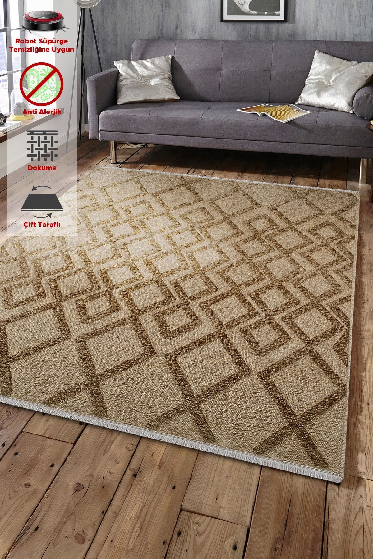 Kilim Çakıl Kaydırmaz Saçaklı Bej Pamuk Dokuma Dekoratif Salon & Mutfak & Yemek Odası Halısı Kilim Çakıl Kaydırmaz Saçaklı Bej Pamuk Dokuma Dekoratif Salon & Mutfak & Yemek Odası Halısı MKCK0001 160 x 230