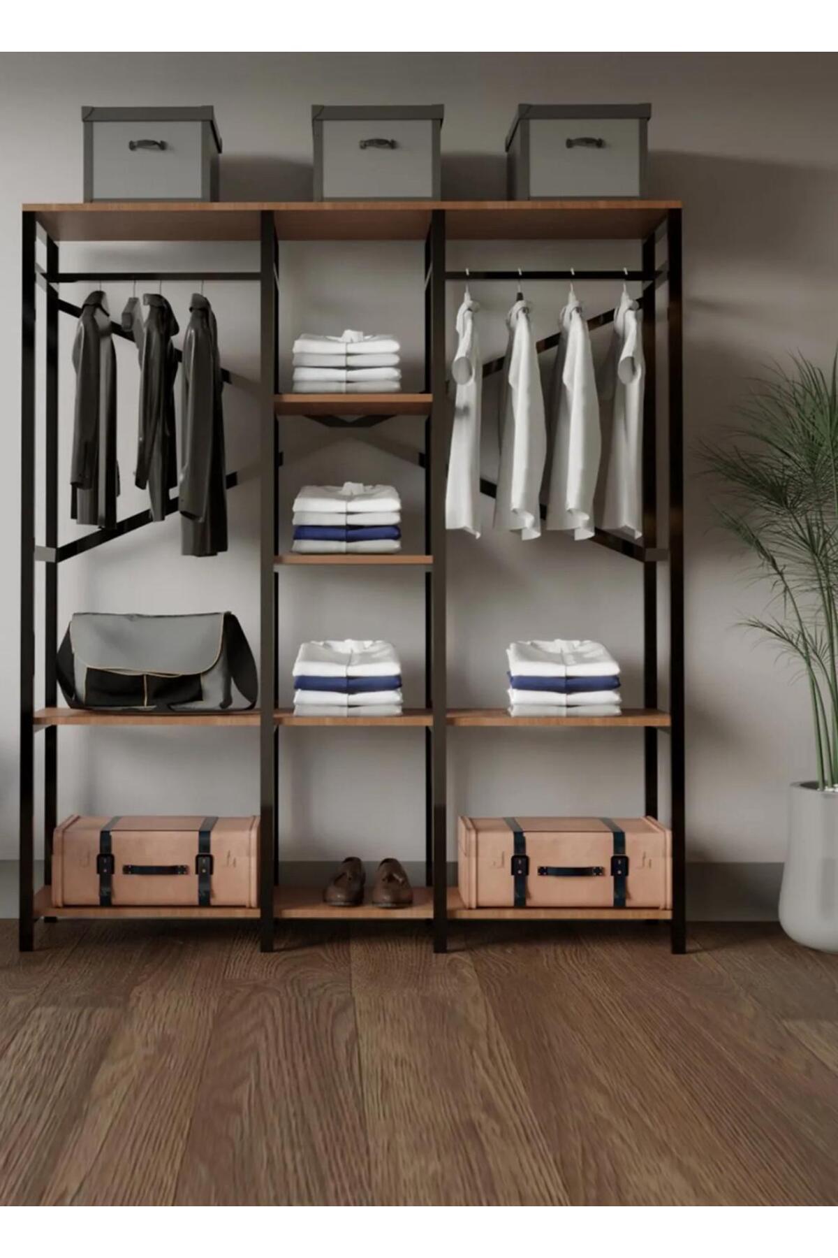 Alkor Metal Masif Ahşap Desenli Yonga Levha Açık Giyinme Dolap Gardrop Alkor Metal Masif Ahşap Desenli Yonga Levha Açık Giyinme Dolap Gardrop ALKOR-RAF 180 cm