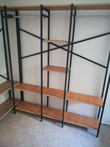 Alaca-masif Ceviz Desenli Metal Ayaklı Açık Giyinme Dolap Gardrop Portmanto Askılık Alaca-masif Ceviz Desenli Metal Ayaklı Açık Giyinme Dolap Gardrop Portmanto Askılık ALACA 180 cm