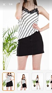 Kadın Çizgili Desenli Yakası Dantelli Ayarlanabilir Ip Askılı Bluz Kadın Çizgili Desenli Yakası Dantelli Ayarlanabilir Ip Askılı Bluz 025 L