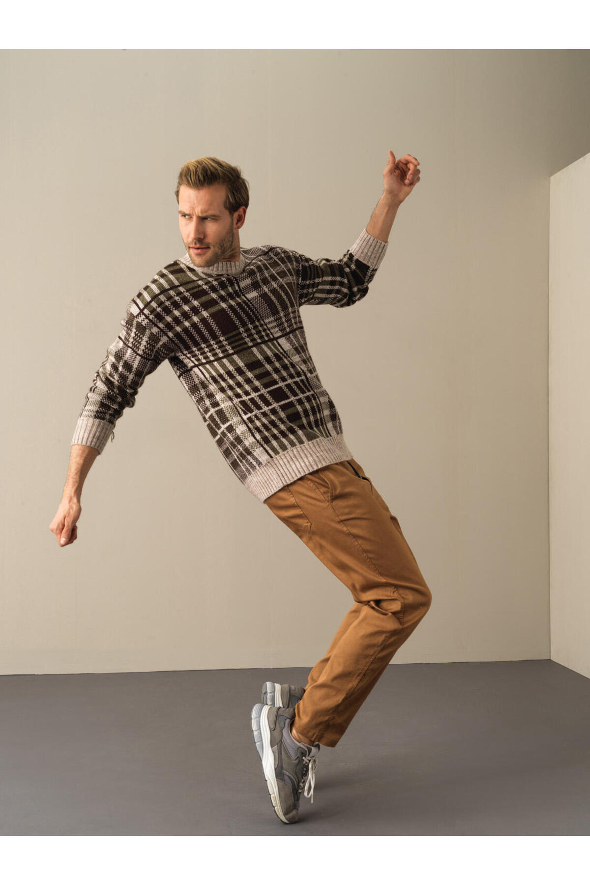 Erkek Kahve Bisiklet Yaka Oversize Ekose Kazak Erkek Kahve Bisiklet Yaka Oversize Ekose Kazak 801704 2XL