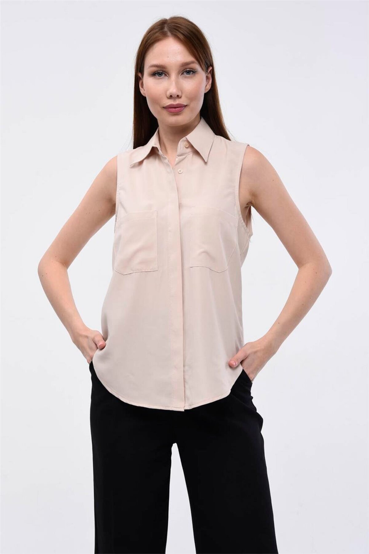 Kadın Ekru Kolsuz Viskon Gömlek GML-19000631 Kadın Ekru Kolsuz Viskon Gömlek GML-19000631 XL