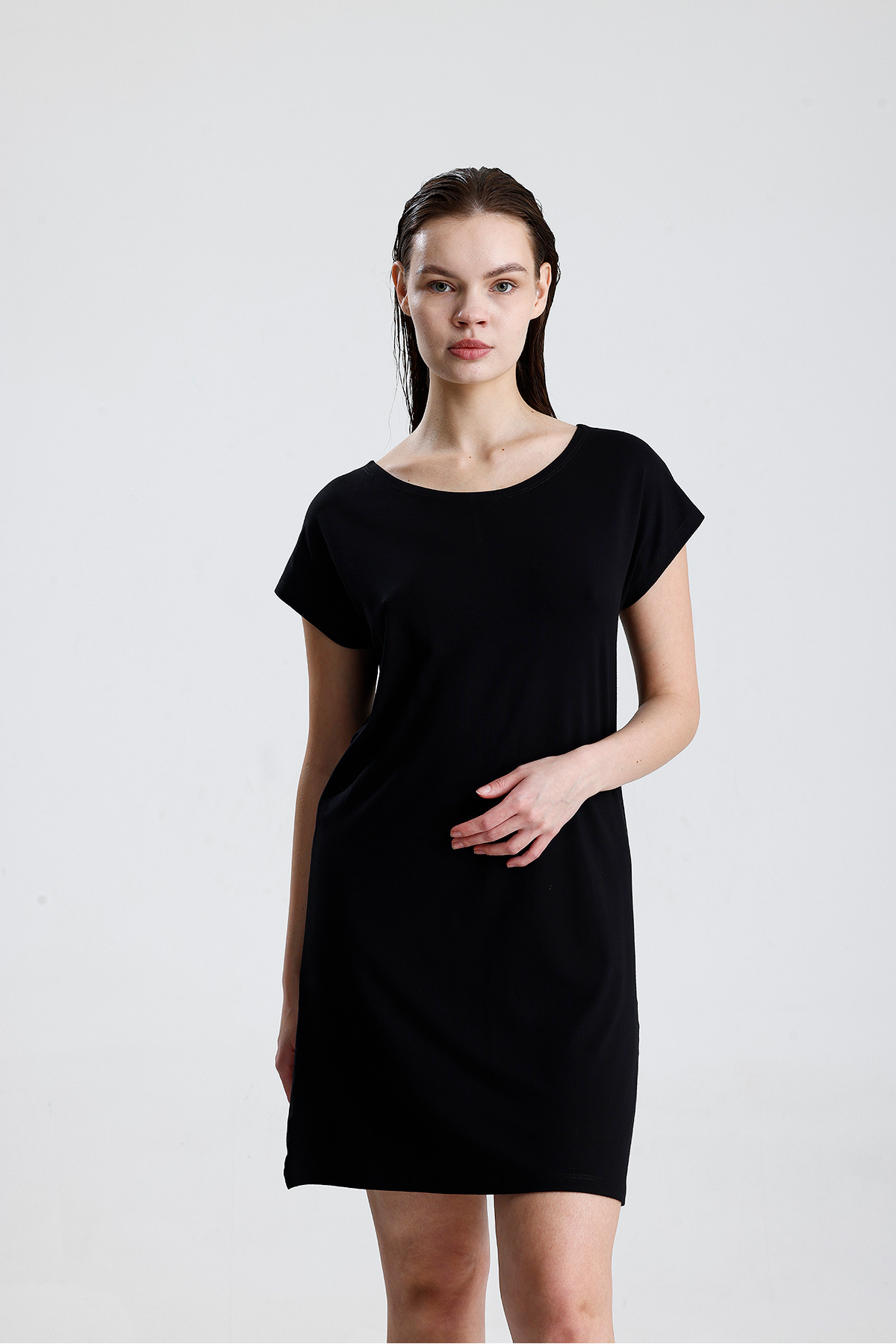 Havuz Yaka Mini Kol Elbise | Elb33681 Siyah Havuz Yaka Mini Kol Elbise | Elb33681 Siyah ELB33681 50