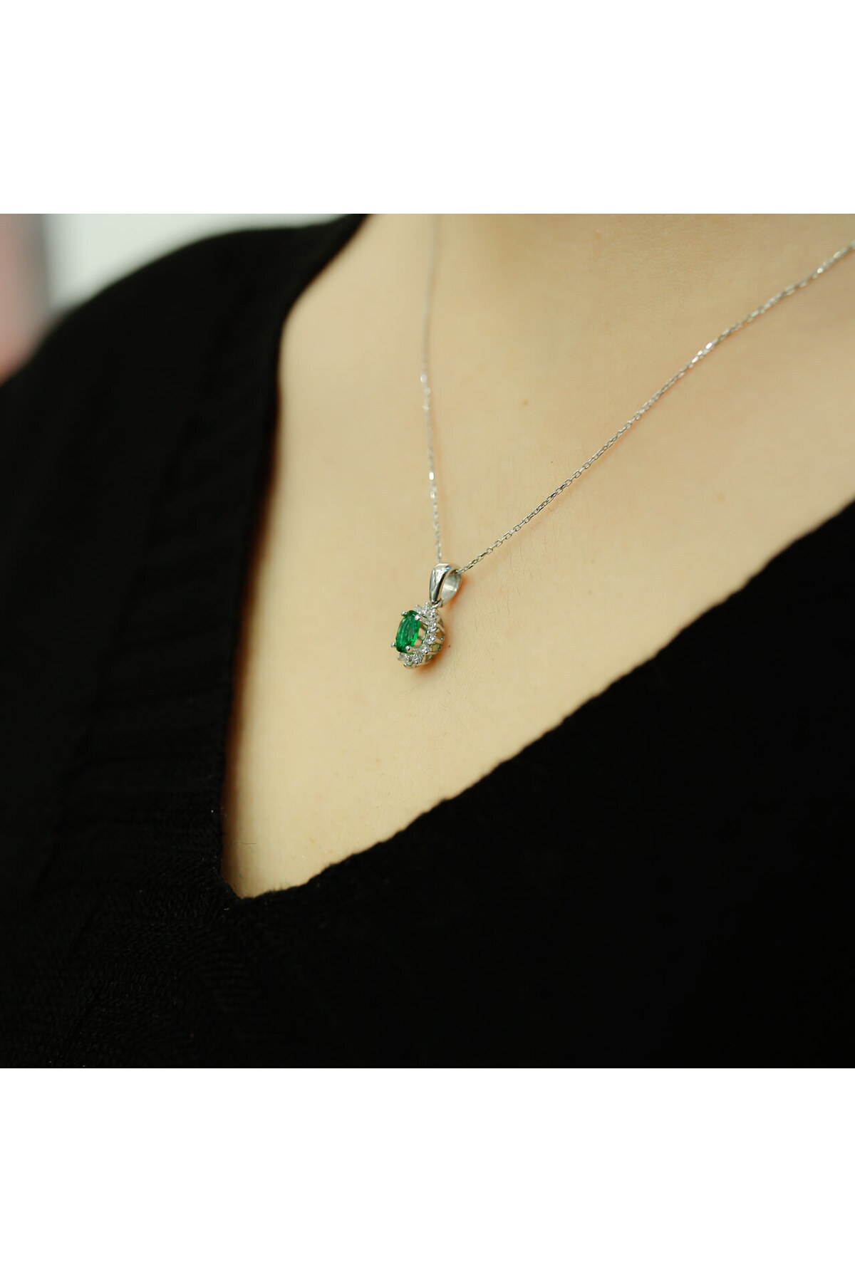 Pırlantalı Oval Zümrüt Anturaj Kolye - 2050001 Pırlantalı Oval Zümrüt Anturaj Kolye - 2050001 تک سایز