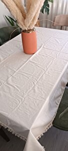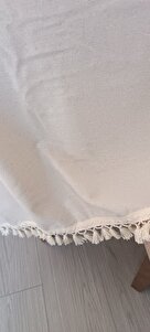 Organik Ham Keten Krem Ponponlu Masa Örtüsü Organik Ham Keten Krem Ponponlu Masa Örtüsü 209814 190 x 220