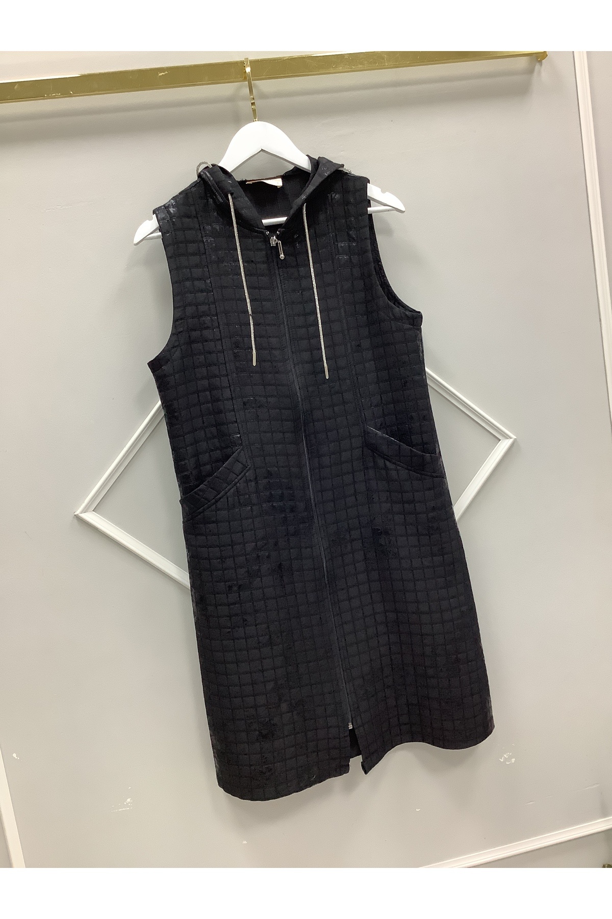 Kadın Gri Kapüşonlu Kapitone Çift Taraflı Yelek Kadın Gri Kapüşonlu Kapitone Çift Taraflı Yelek NB0002 L