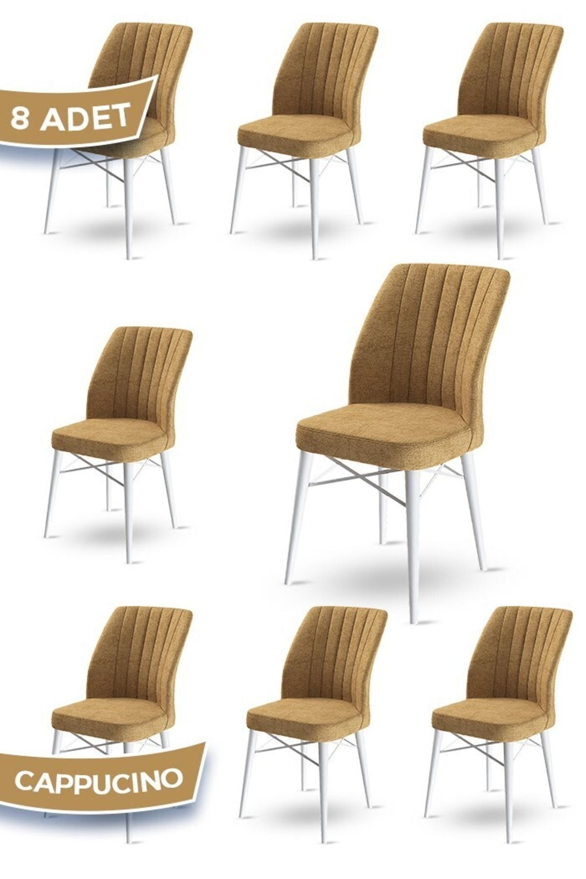 Flex Serisi, Üst Kalite Yemek Odası Sandalyesi, 8 Adet Gülkurusu Sandalye, Gürgen Beyaz Ahşap Ayak Flex Serisi, Üst Kalite Yemek Odası Sandalyesi, 8 Adet Gülkurusu Sandalye, Gürgen Beyaz Ahşap Ayak 27FLEXBYZ08 تک سایز