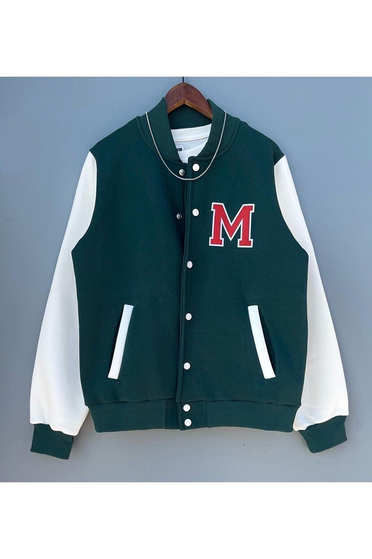 Unisex Oversize Yeşil Athl Fermuarlı Bomber Kolej Ceket Unisex Oversize Yeşil Athl Fermuarlı Bomber Kolej Ceket NLB-Y01 4XL