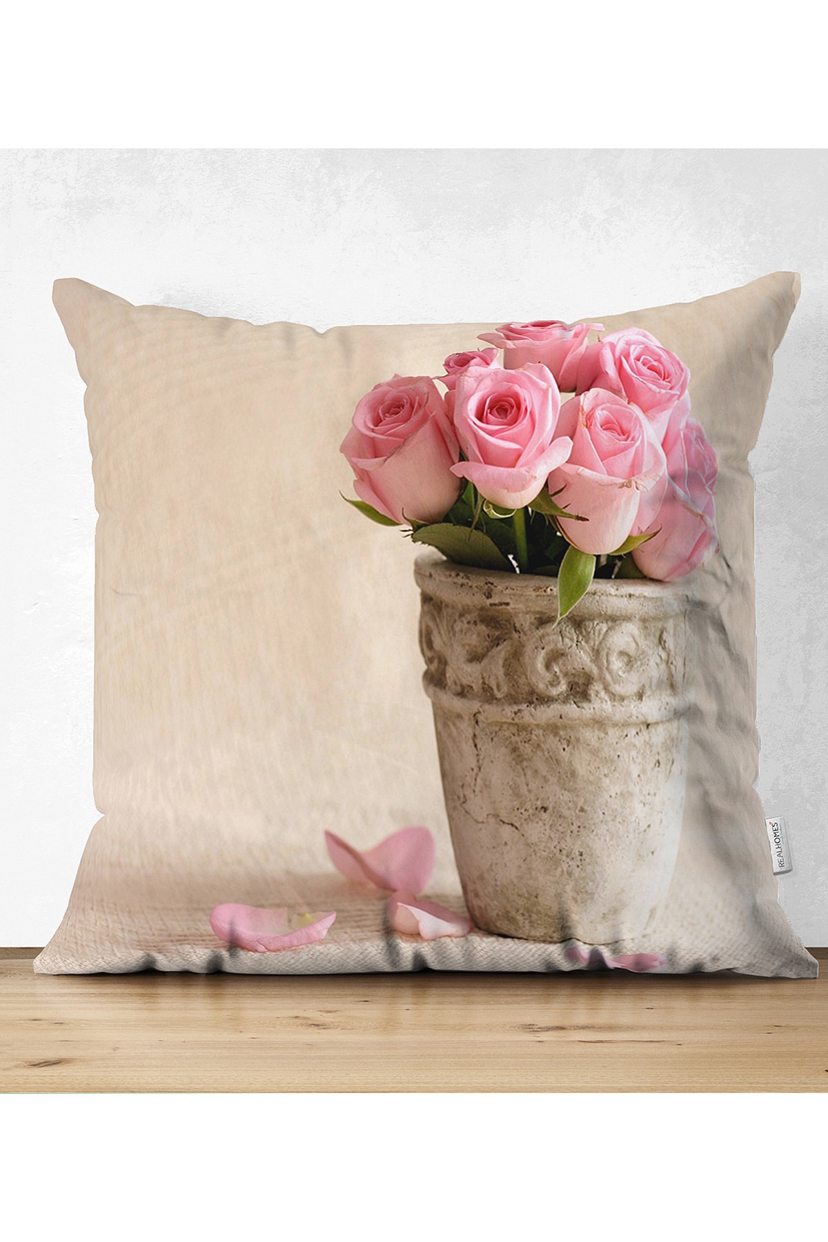 Pembe Güller Dijital Baskılı Dekoratif Yastık Kırlent Kılıfı Pembe Güller Dijital Baskılı Dekoratif Yastık Kırlent Kılıfı k11 تک سایز