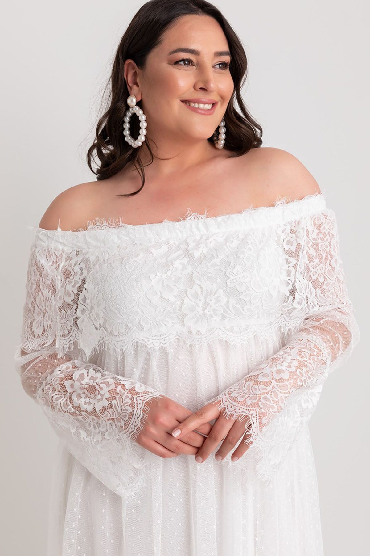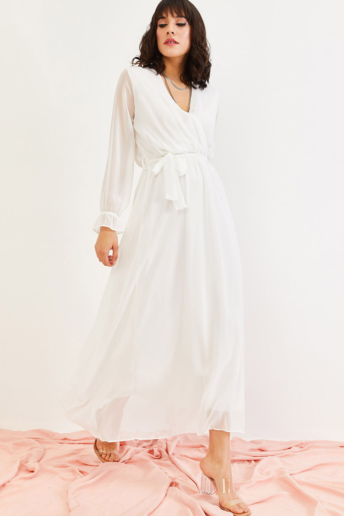 Kadın Beyaz Uzun Kruvaze Yaka Şifon Elbise Kadın Beyaz Uzun Kruvaze Yaka Şifon Elbise ELBISEDELISI-0001 5XL