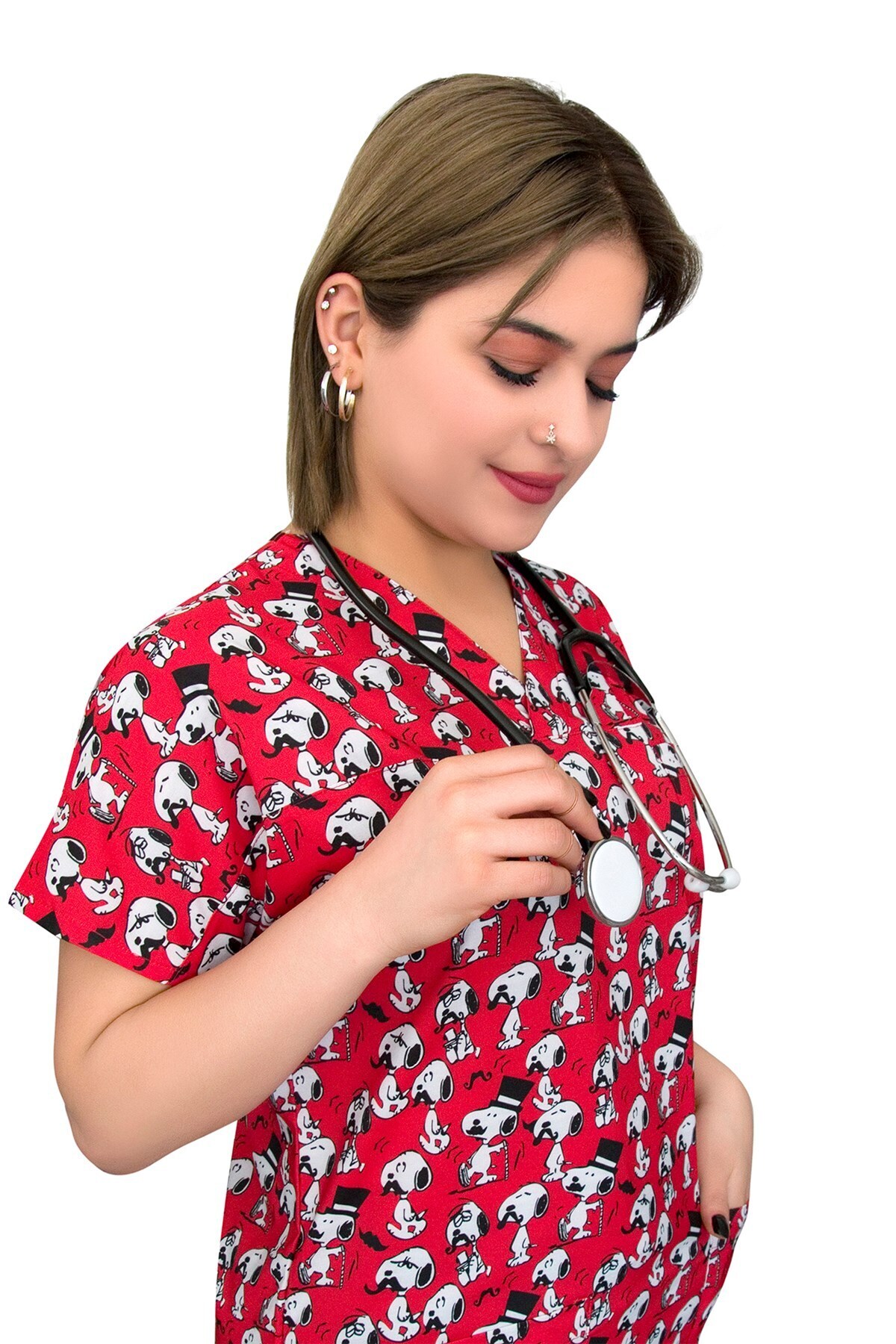 Unisex Kırmızı Snoppy Temalı Hastane Doktor Hemşire Forması Üst Unisex Kırmızı Snoppy Temalı Hastane Doktor Hemşire Forması Üst OST-857496225 2XL