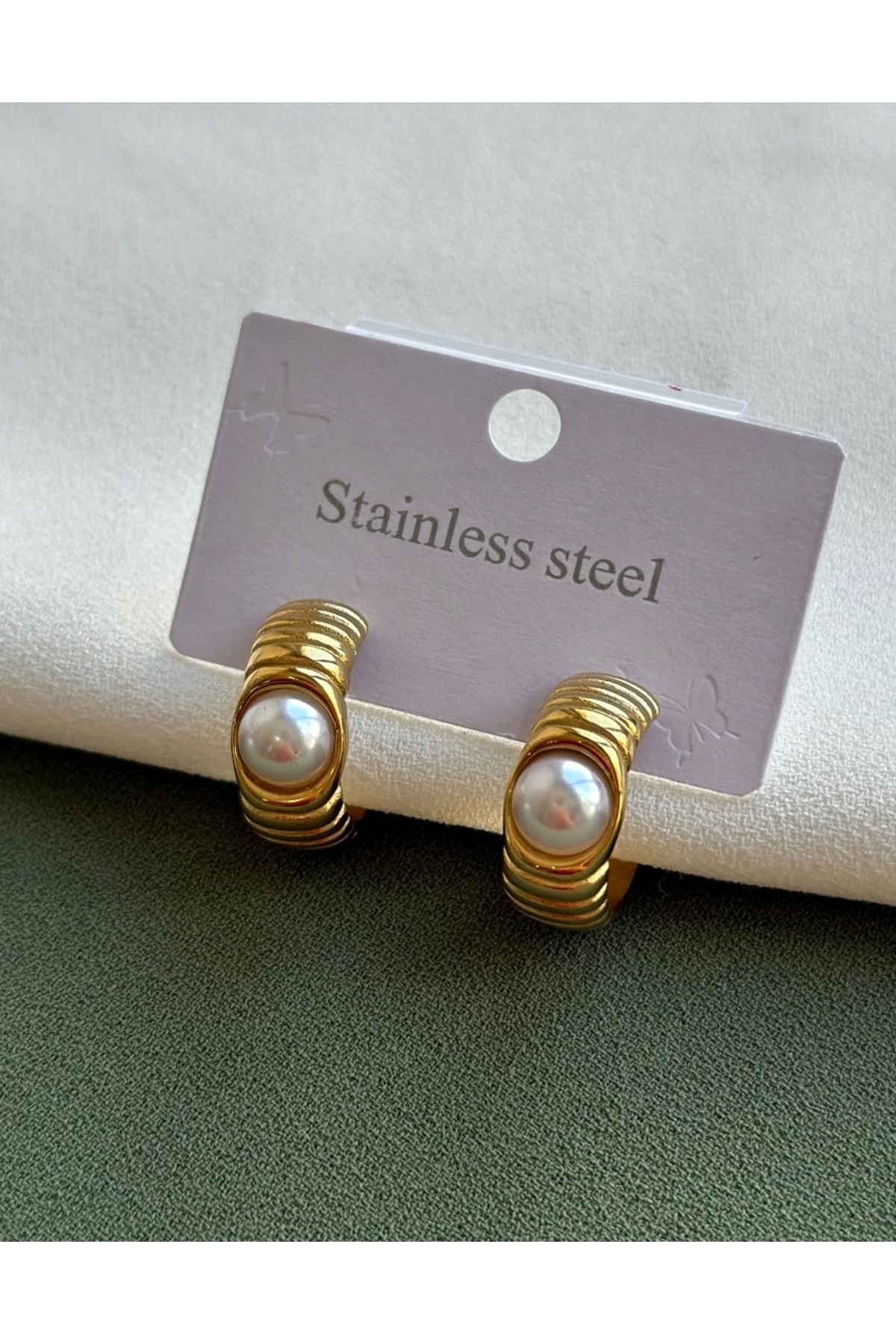 Incili Polen Ikili Vidalı Küpe Incili Polen Ikili Vidalı Küpe LDY00034 تک سایز