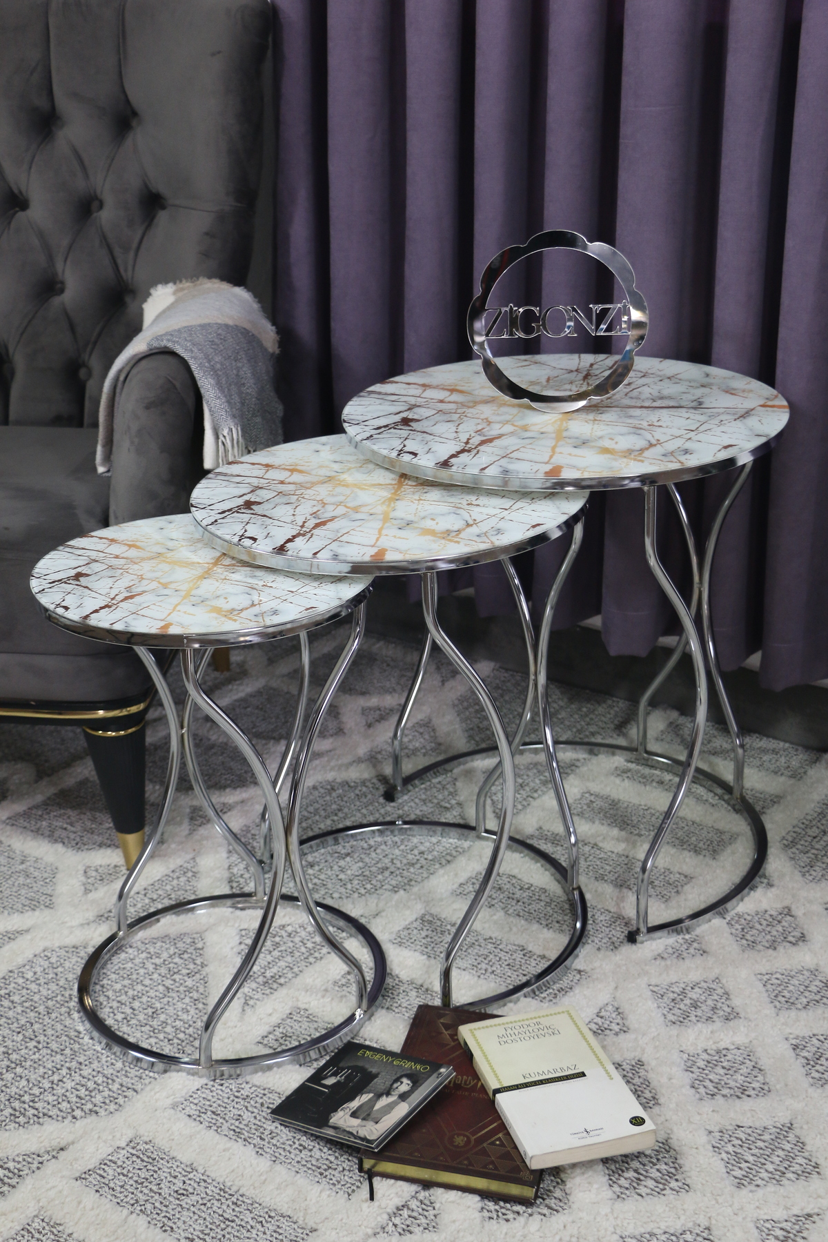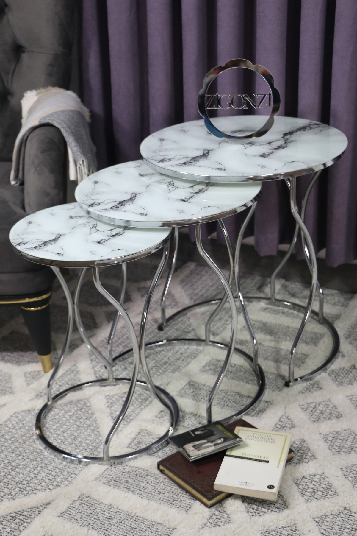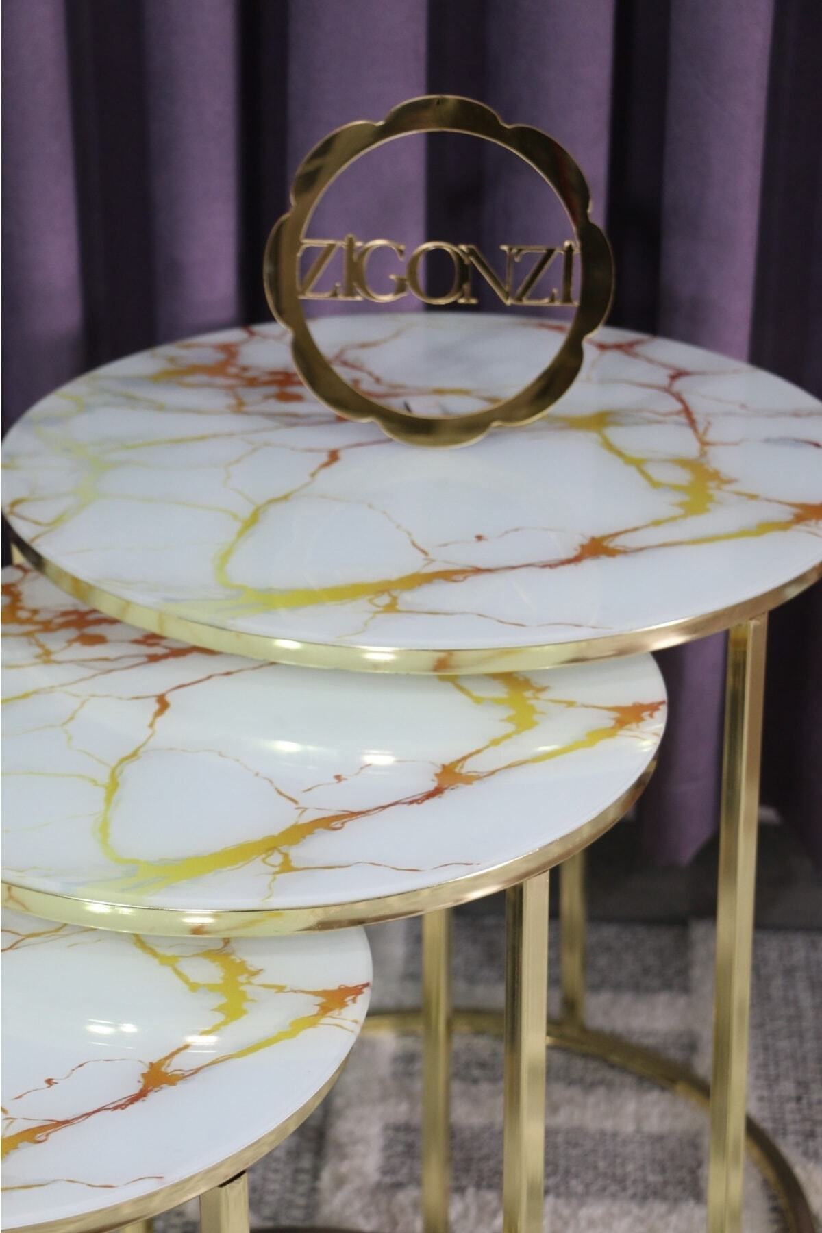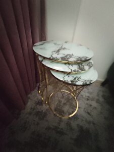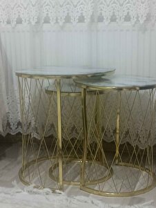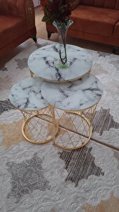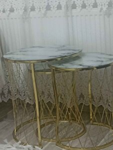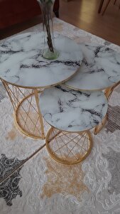 Üçlü Zigon Temperli Cam Beyaz Siyah Mermer Desenli Hasır Sehpa - Üçlü Zigon Temperli Cam Beyaz Siyah Mermer Desenli Hasır Sehpa - 637GoldHasır تک سایز