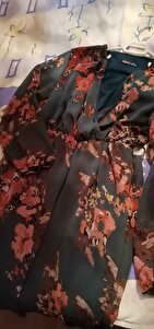 Kadın Yeşil Çiçekli Kruvaze Yaka Şifon Elbise Kadın Yeşil Çiçekli Kruvaze Yaka Şifon Elbise ELBISEDELISI-0144 5XL