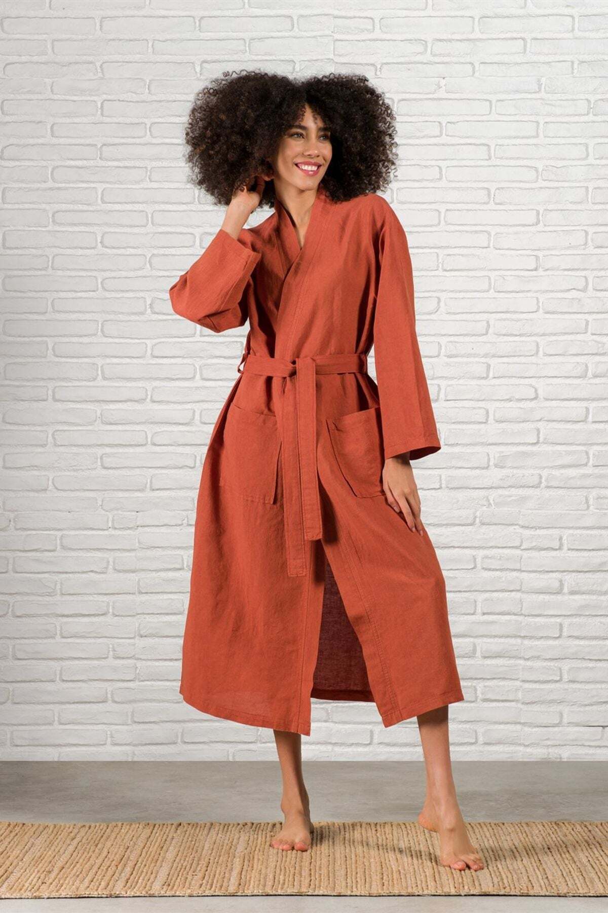 Serenity Keten Kimono Kiremit Serenity Keten Kimono Kiremit MAM.BR.EV.TKS.BANYO.00009 L/XL