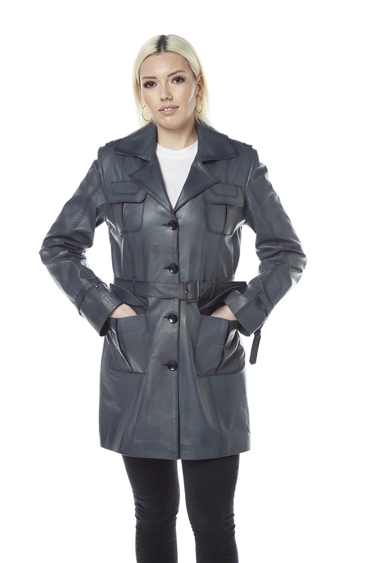 Kadın Siyah Düğmeli Uzun Deri Trençkot Kadın Siyah Düğmeli Uzun Deri Trençkot PIXAMARJINAL4142 46