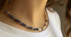 Kadın Doğaltaşlı Sodalit Ve Inci Tasarım Kolye Kadın Doğaltaşlı Sodalit Ve Inci Tasarım Kolye DİS0001 تک سایز