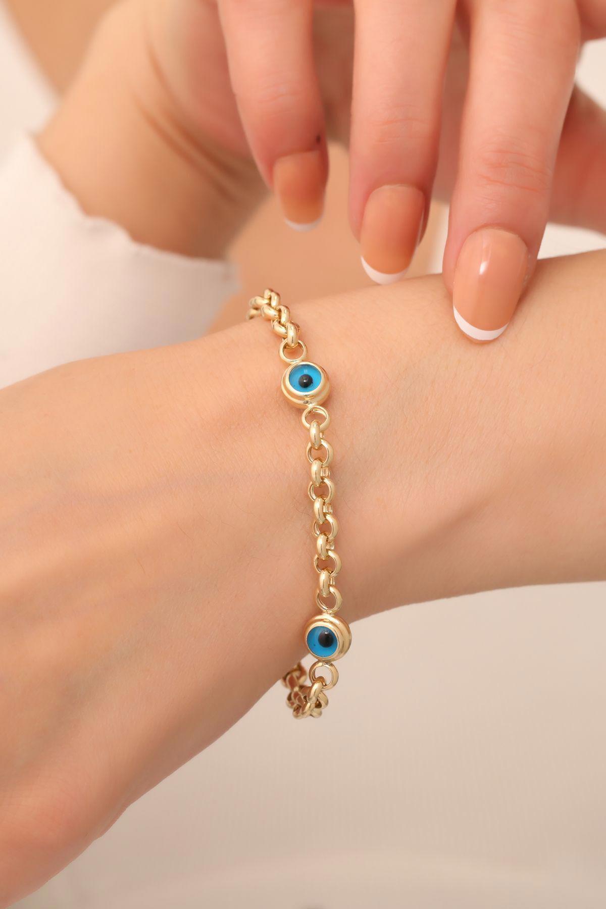 Nazar Boncuklu Altın Bileklik Nazar Boncuklu Altın Bileklik 14KNY917 تک سایز