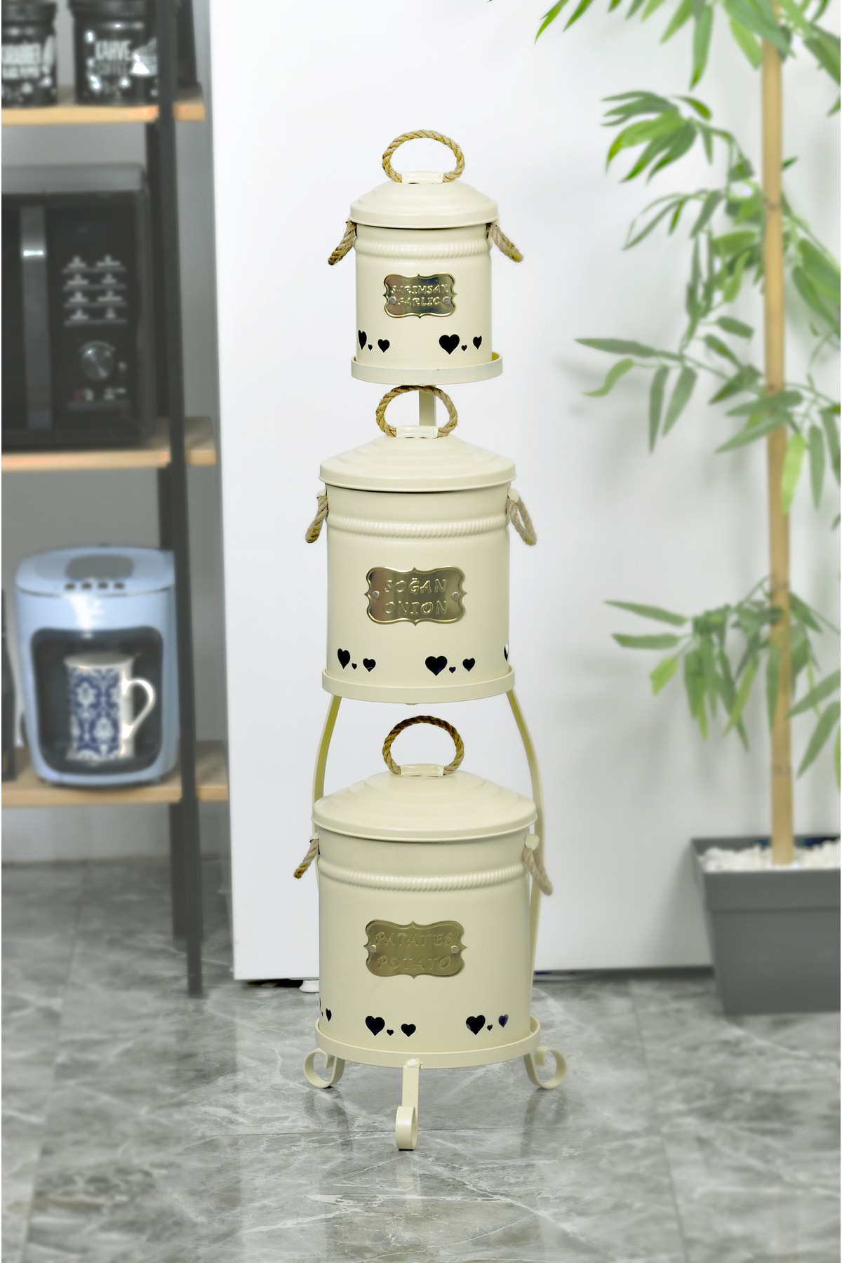 Lüks Metal Standlı 3 Katlı Patates Soğan Sarımsak Kovası Krem 1040k Lüks Metal Standlı 3 Katlı Patates Soğan Sarımsak Kovası Krem 1040k تک سایز