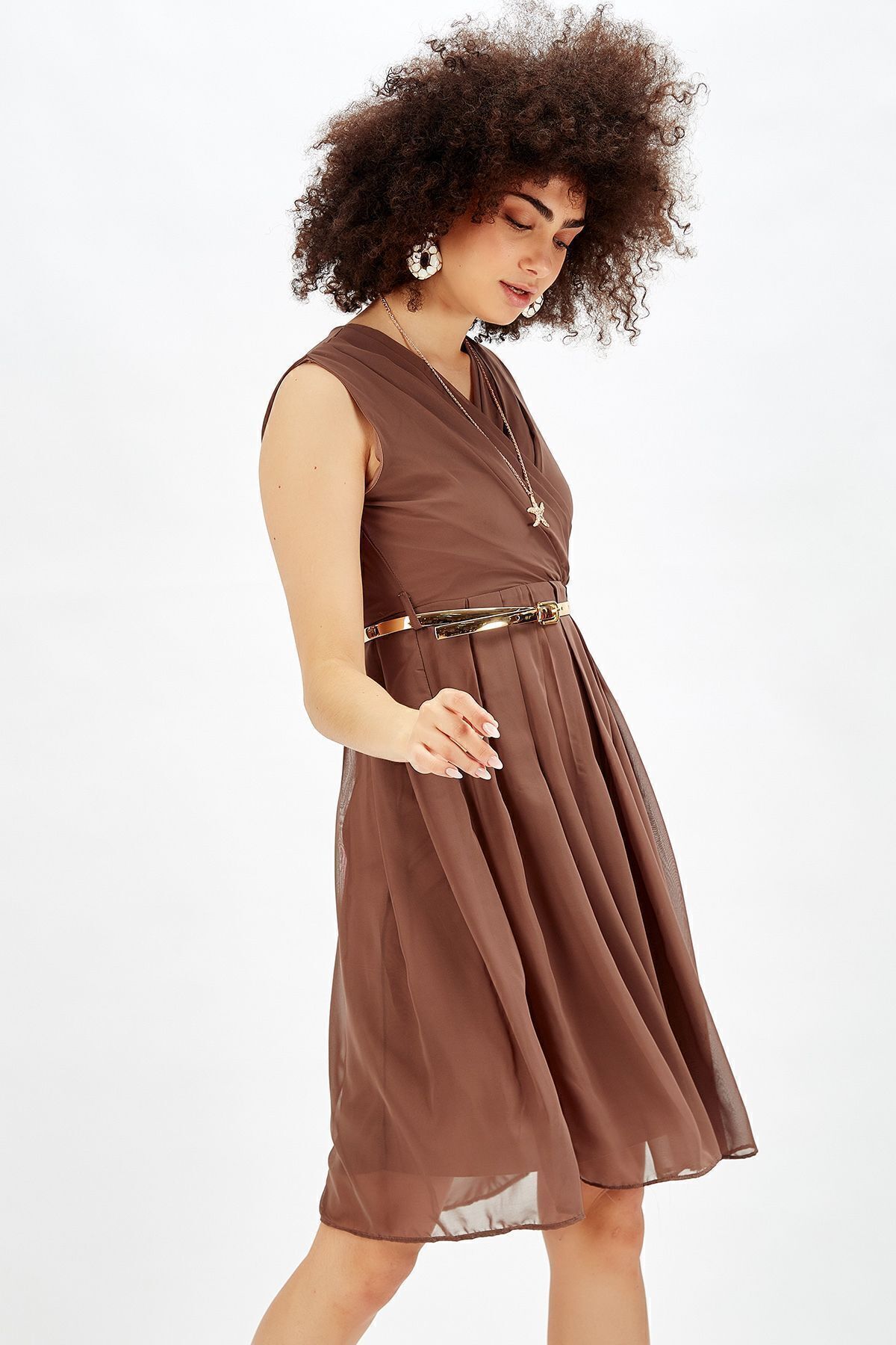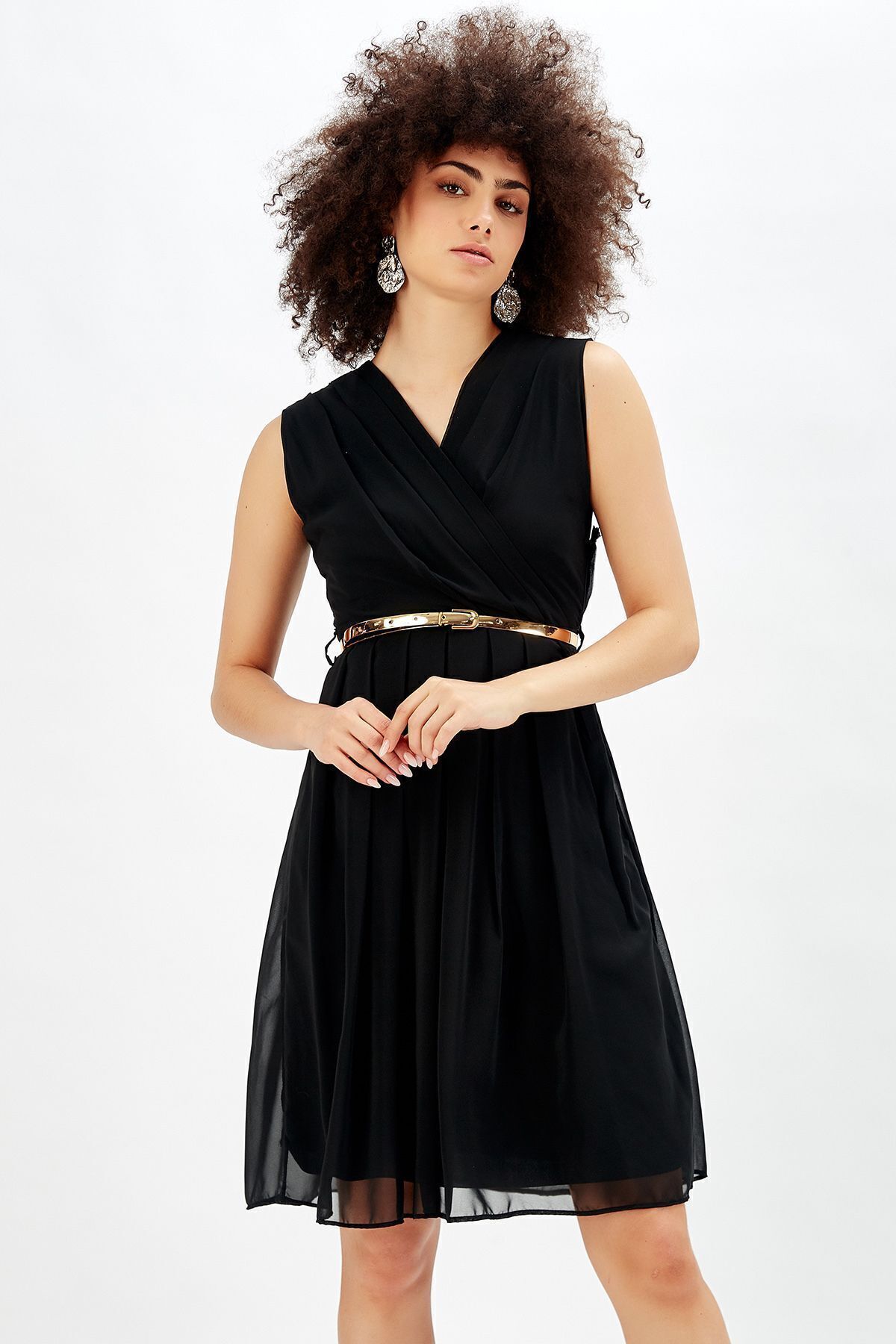 Beli Kemerli Kruvaze Şifon Ofis Elbisesi K.siyah, Beli Kemerli Kruvaze Şifon Ofis Elbisesi K.siyah, Elb31542 42
