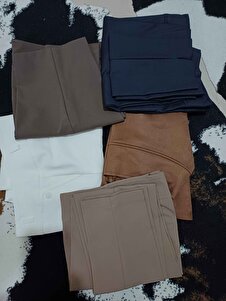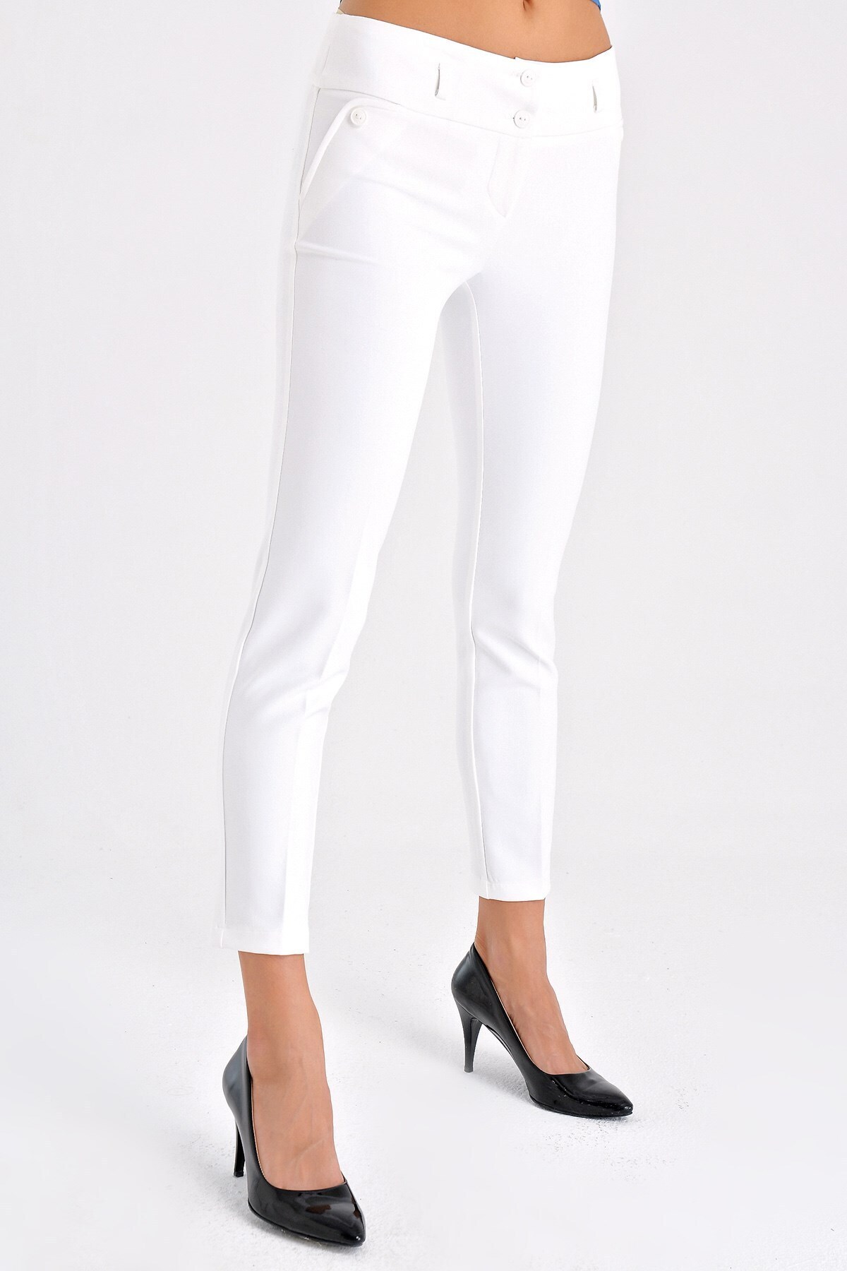 Kalın Kemerli Süs Cepli Bilek Boy Likralı Kumaş Pantolon-Krem Kalın Kemerli Süs Cepli Bilek Boy Likralı Kumaş Pantolon-Krem 2434 44