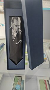 Siyah Renk Atatürk Porteli Kravat (kutulu) Siyah Renk Atatürk Porteli Kravat (kutulu) AK34 تک سایز