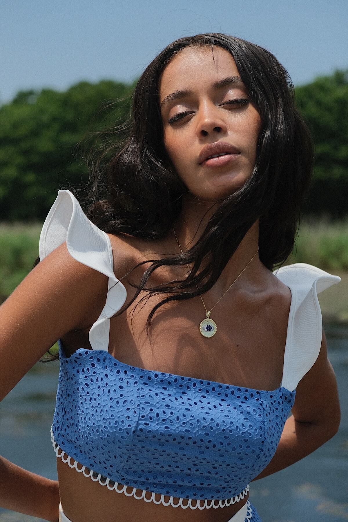 Estella Kadın Mavi Mini Etek Crop Top Alt Üst Takım Estella Kadın Mavi Mini Etek Crop Top Alt Üst Takım Tina3M 38