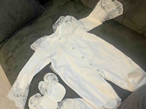Kız Bebek Ekru Fransız Güpür Detaylı Tulum Seti Kız Bebek Ekru Fransız Güpür Detaylı Tulum Seti TS05 3-6 AY