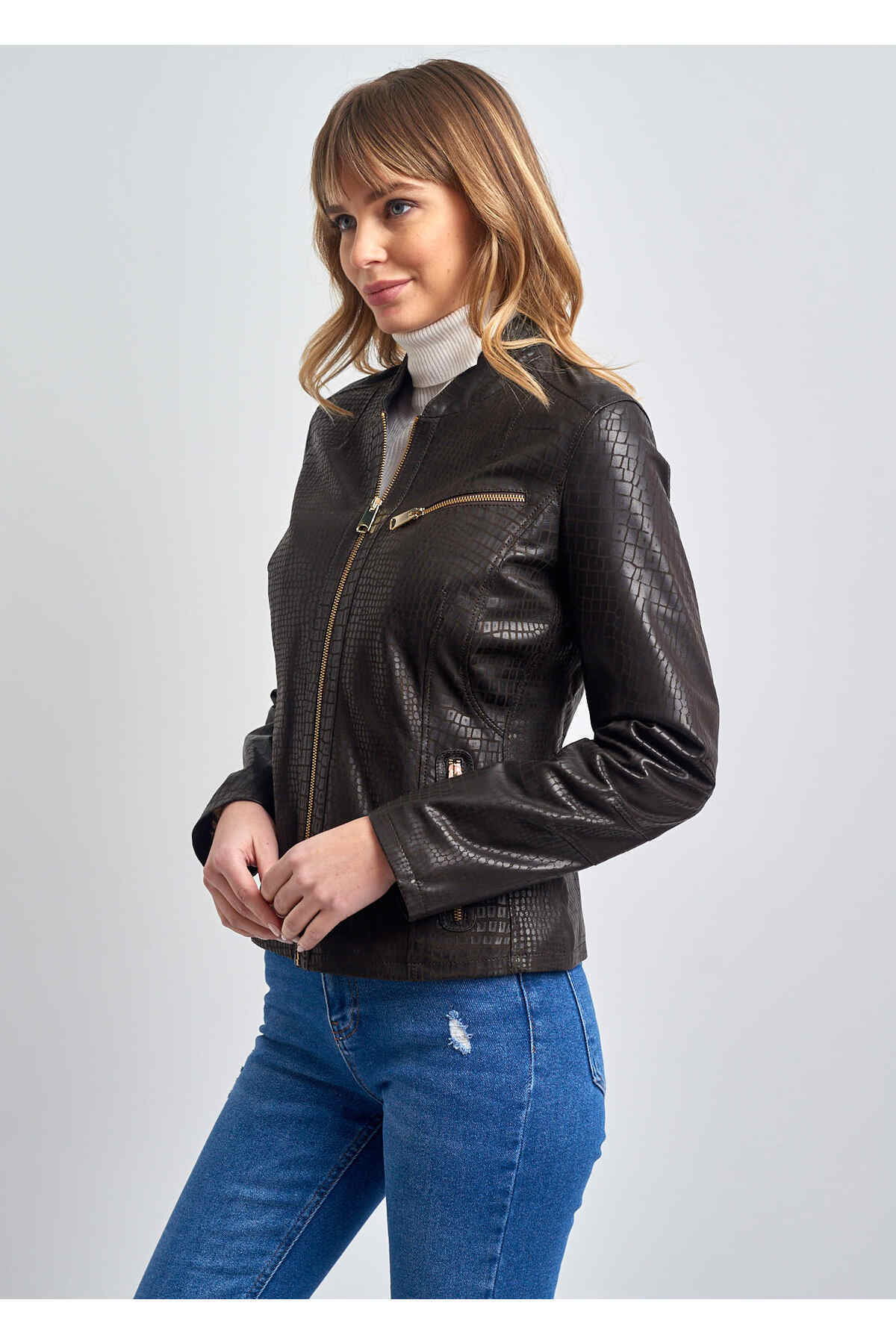 Kadın Kahverengi Ince Fermuarlı Deri Ceket Kadın Kahverengi Ince Fermuarlı Deri Ceket PX4275 40
